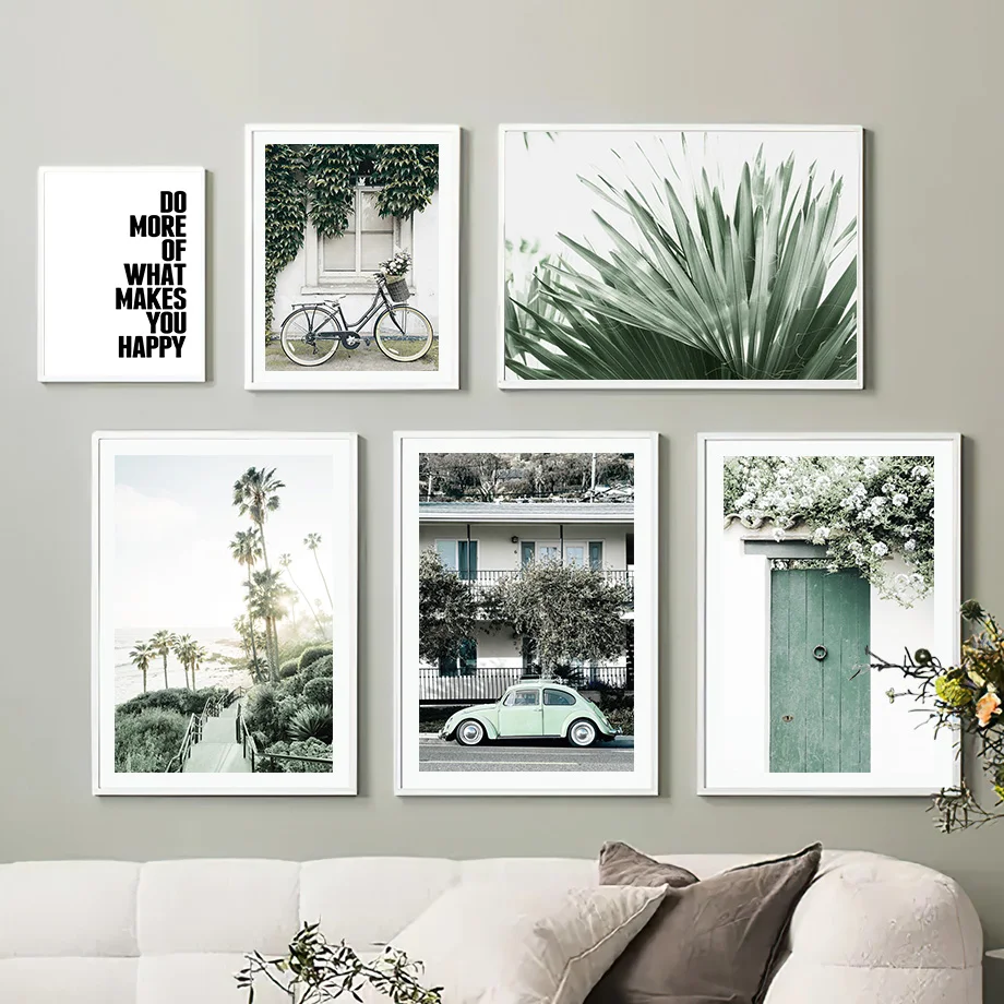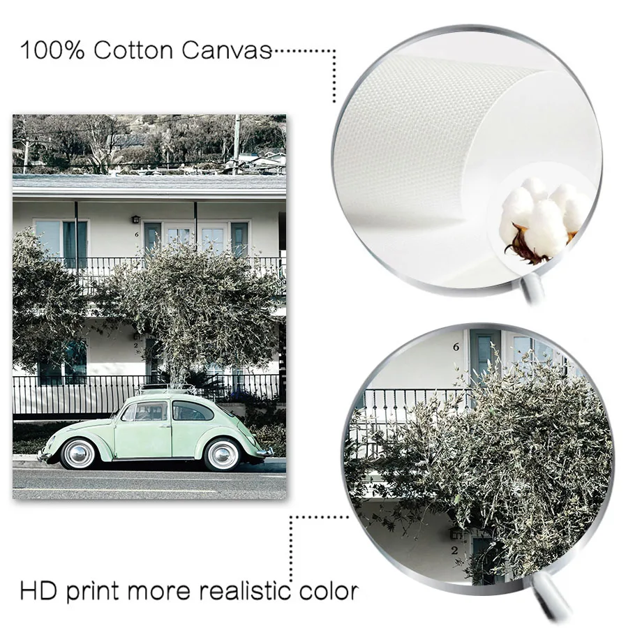 Ретро Автомобиль Велосипед Пальма зеленый лист стена искусство холс...