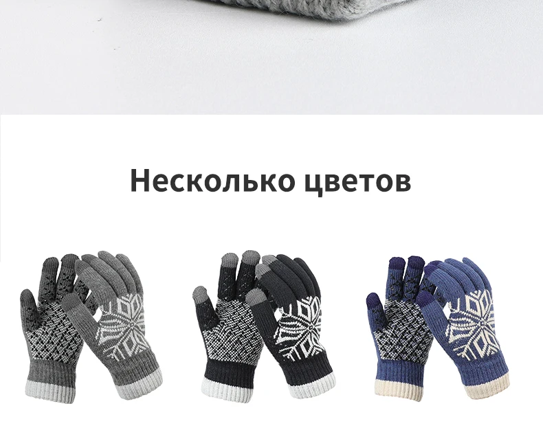 Зимние вязаные перчатки мужские для сенсорного экрана