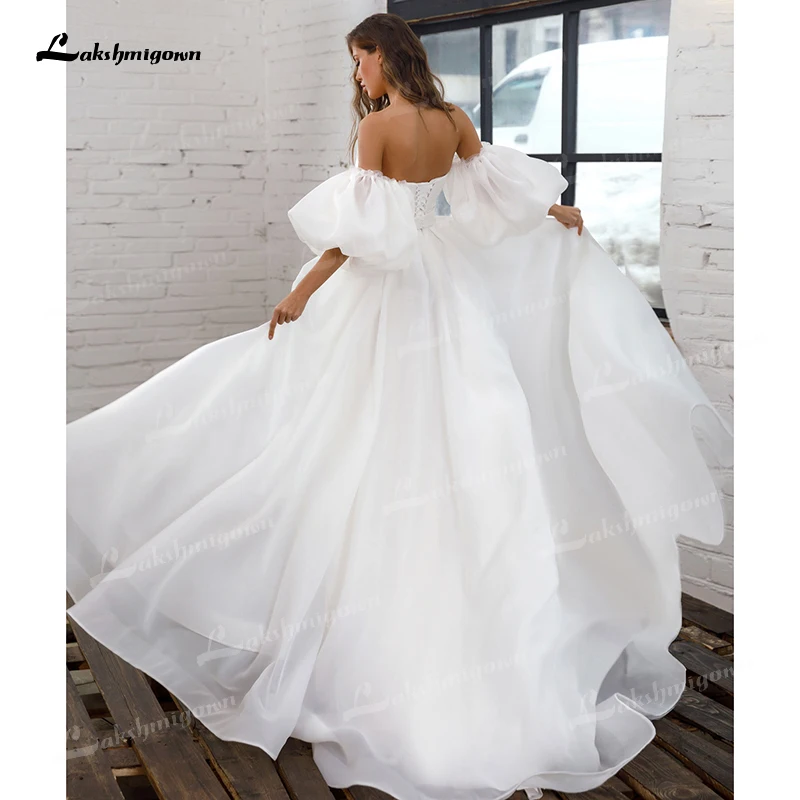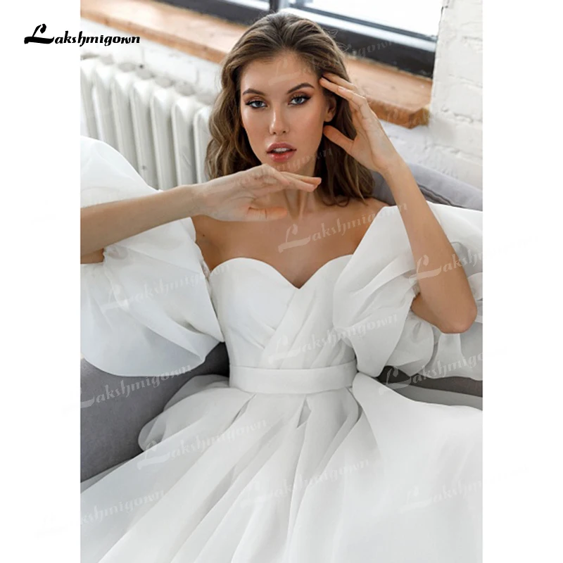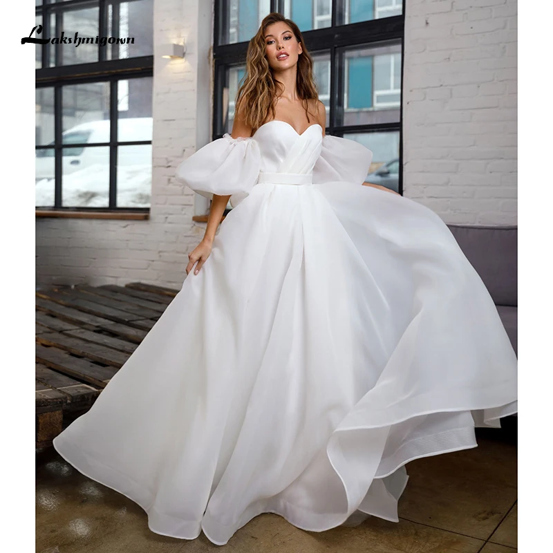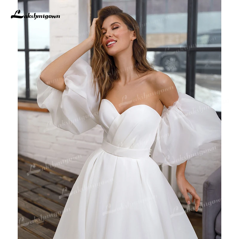 Свадебное платье принцессы со съемными пышными рукавами из органзы с высокой талией 2022 ТРАПЕЦИЕВИДНОЕ свадебное платье со складками на шнуровке