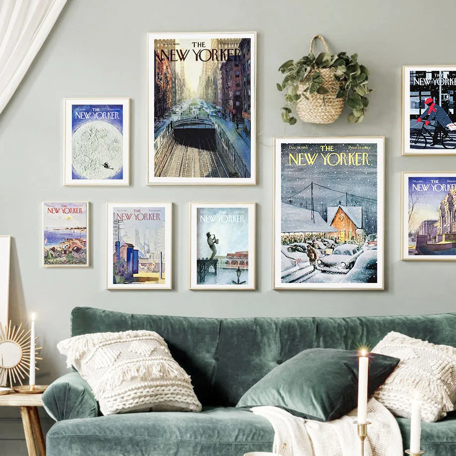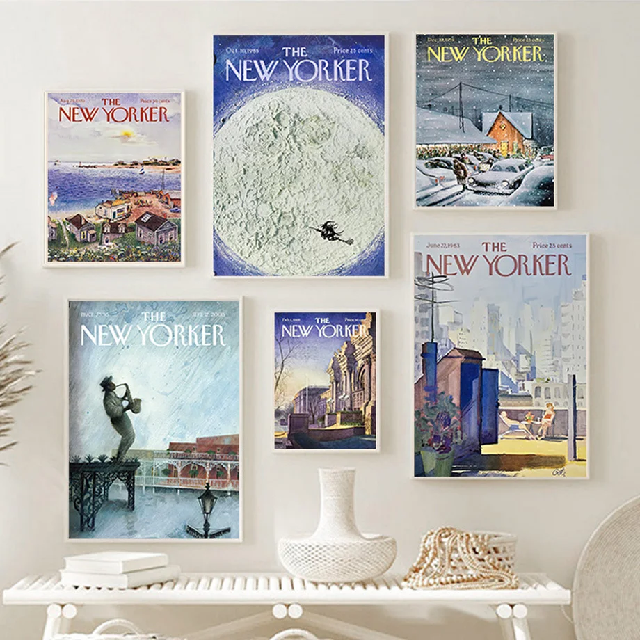 Журналы New Yorker, обложки, винтажная настенная живопись на холсте...