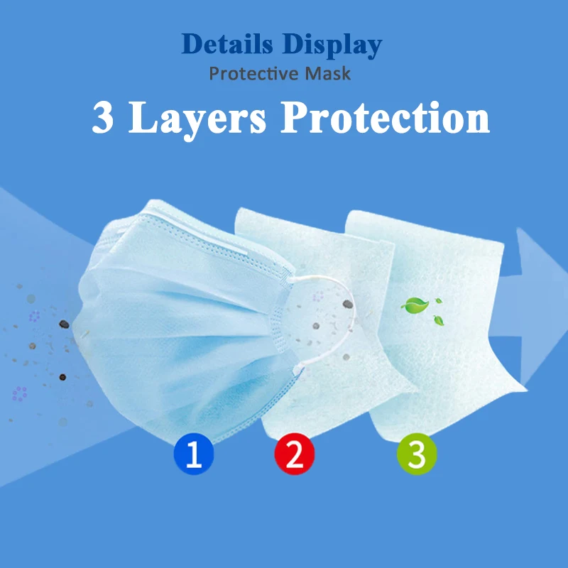 Гражданского одноразовая маска 3-х слойные ежедневная маскаПараметры продукта:Материал: трехслойный нетканый материалПодходящий сезон: Весна, Осень, Зима, ЛетоЦвет: синийСтиль маски: Тип ухаРазмер: один размерОсобенности продукта:1. Новая ткань PP Нетканая ткань, мягкая и чистая, удобная и дышащая2. Процесс бесшовной вязки3. Три раза дизайн, больше дышащего пространства на лице4. Пластиковая полоска для носа, алюминиево-пластиковая полоска для носа,5. Многослойная защита для вашего дыхательного здоровьяКак носить маску:1. Закройте рот и нос и Повесьте два боковых ремня на уши2. Фиксация моста носа в соответствии с формой носа предотвращает загрязнения воздуха от входа.3. Пожалуйста, потяните маску к нижней челюсти, чтобы немедленно предоставить трехмерное дышащее пространство.Пожалуйста, обратите внимание, что указанный Товар производится и распространяется за рубежом и в соответствии с законодательством страны его происхождения