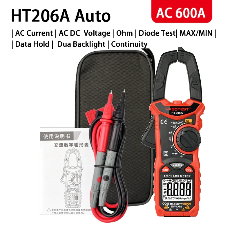 Мультиметр HT206D с зажимами и автонастройкой диапазона, 600 в