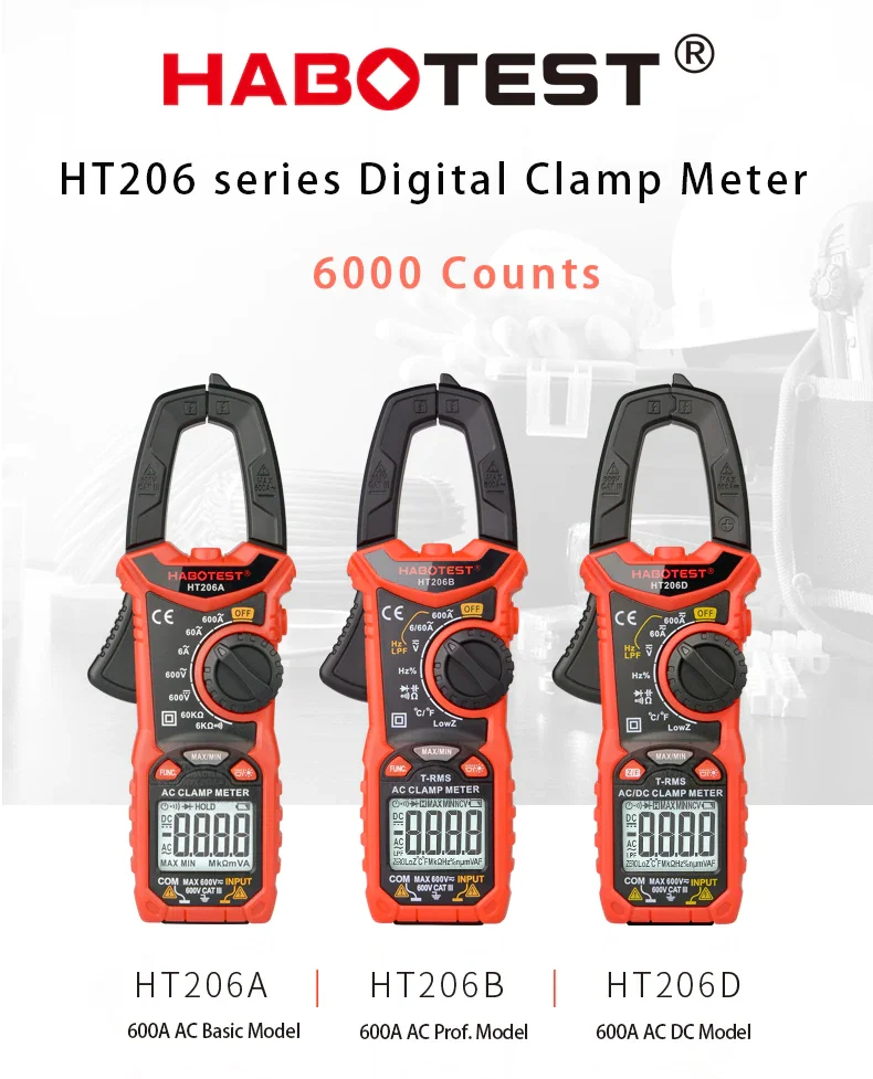 Цифровой зажим HABOTEST HT206, профессиональный вольтметр, 600 А, плоскогубцы, амперметр, тестер емкости с True RMS Ом Гц, 6000 отсчетов