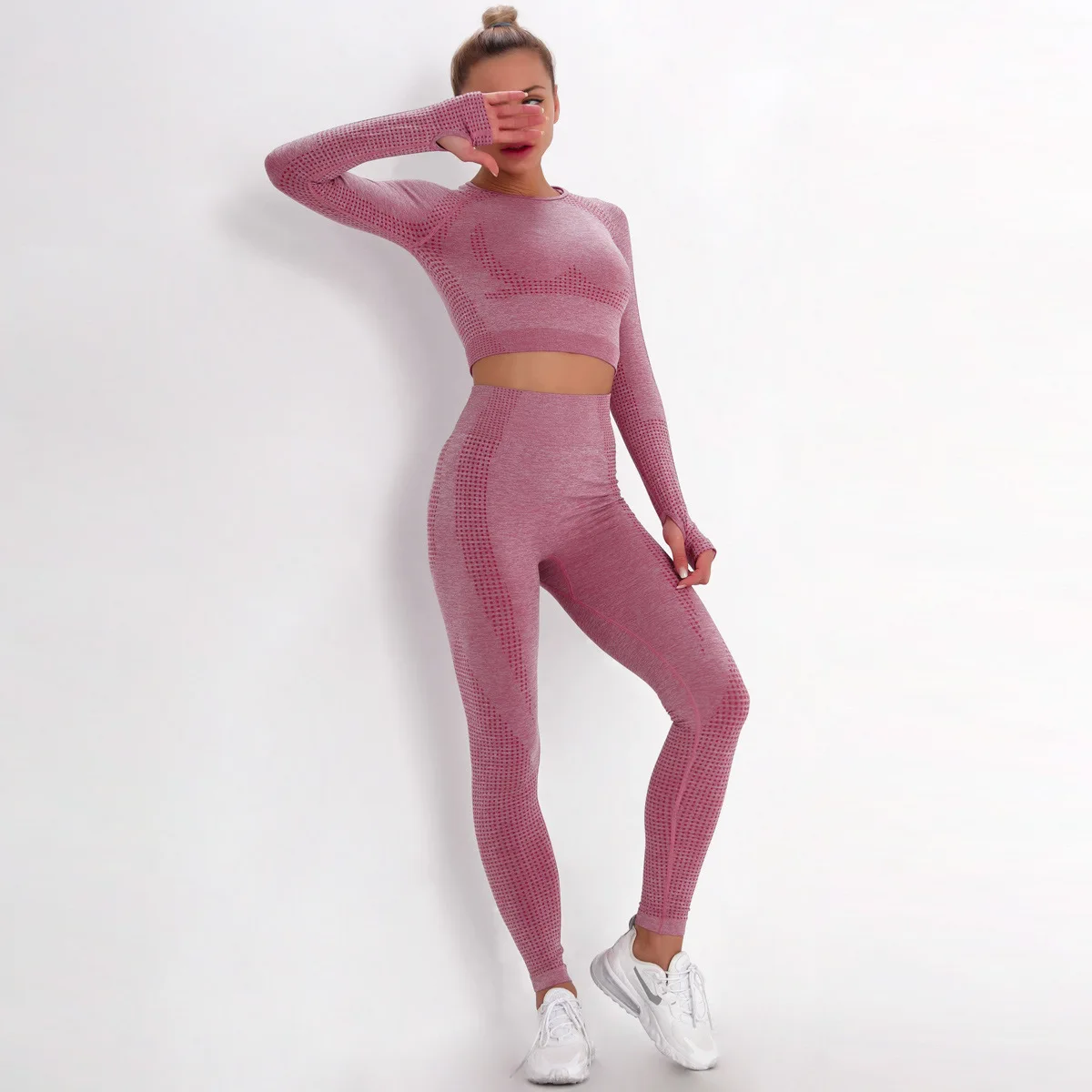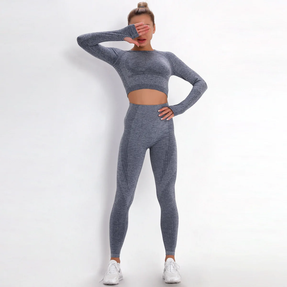 Бесшовный комплект для йоги, одежда для спортзала, одежда для тренировок для женщин, комплект для тренажерного зала, спортивная одежда с высокой талией, костюм для йоги и фитнеса