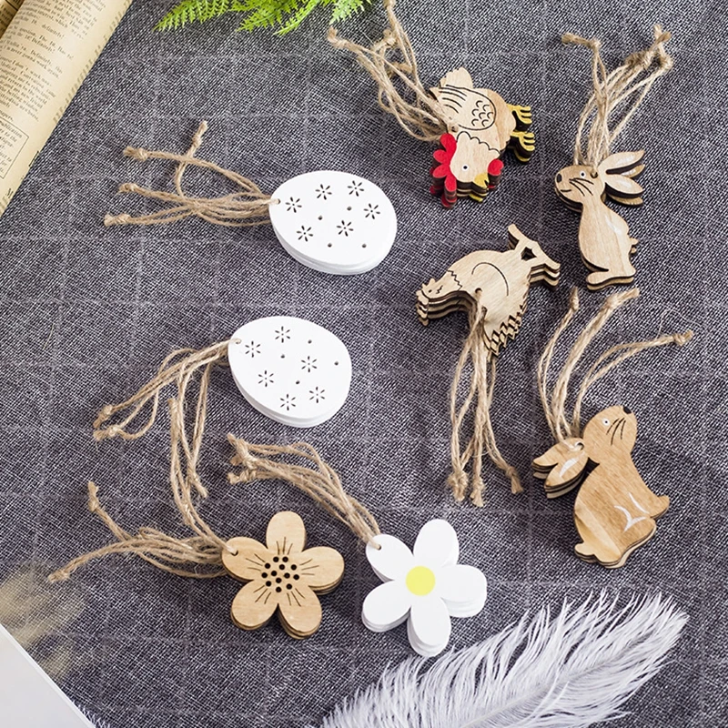 8 шт., деревянные подвесные украшения в виде яйца кролика