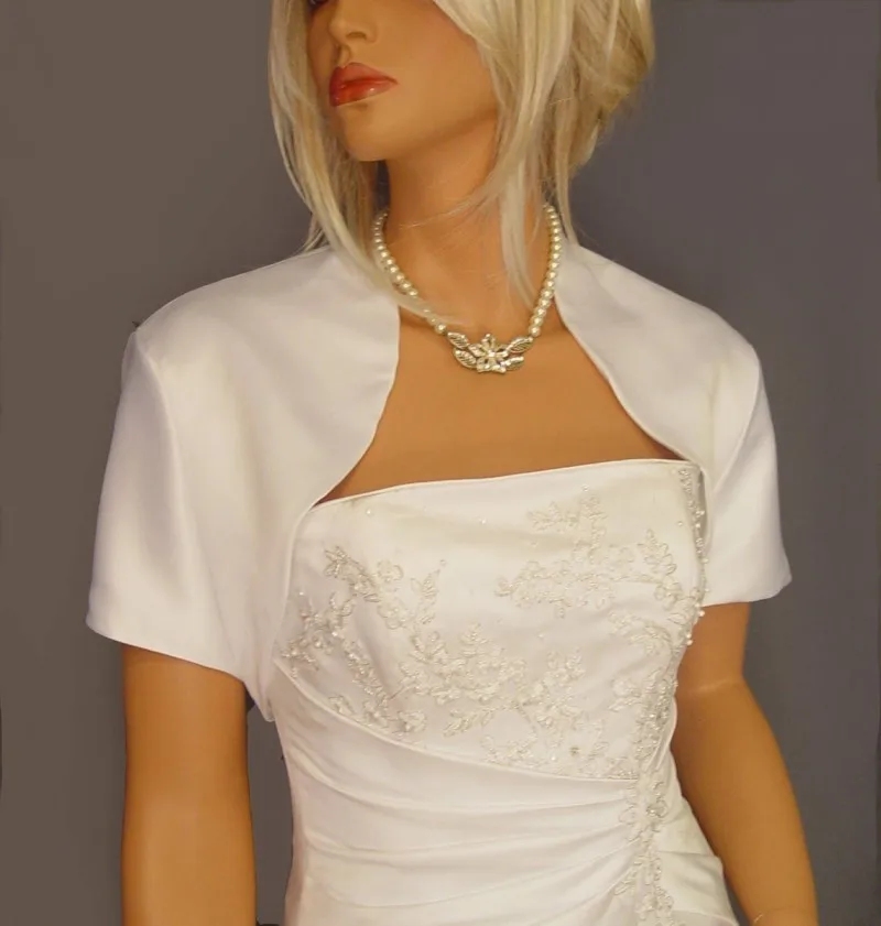 Свадебные накидки с коротким рукавом, белые, цвета слоновой кости, атласные свадебные жакеты, женская вечерняя искусственная шаль, изготовленная на заказ