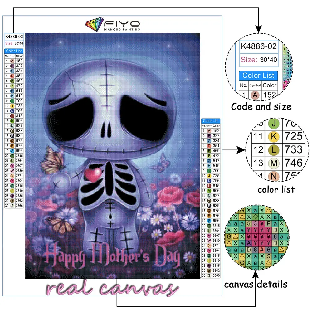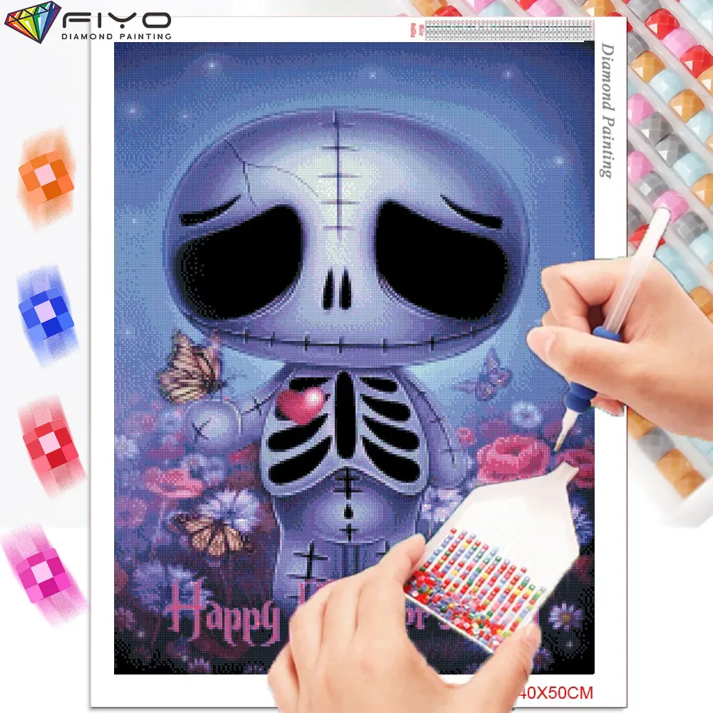 Алмазная живопись FIYO, Полный Круглыйквадратный череп, алмазная вы...