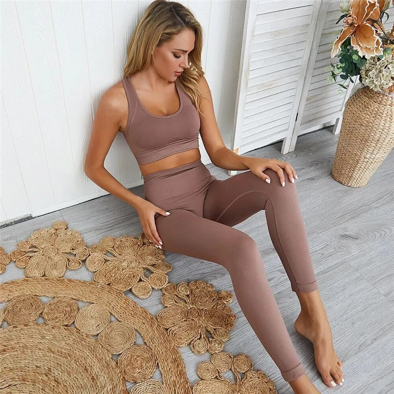 Комплект для йоги бесшовный из 2 предметов, тренировочная Спортивна...