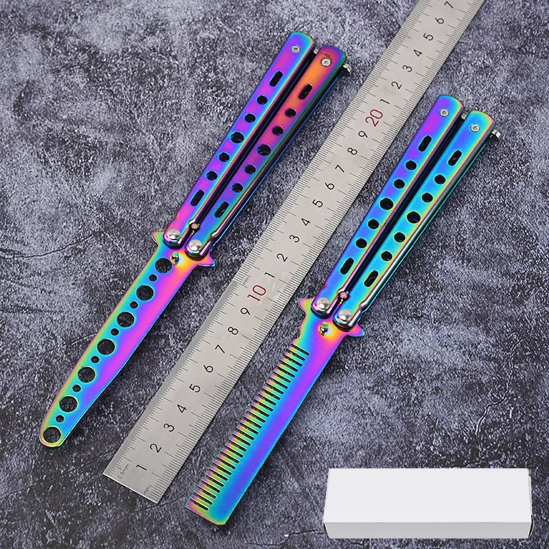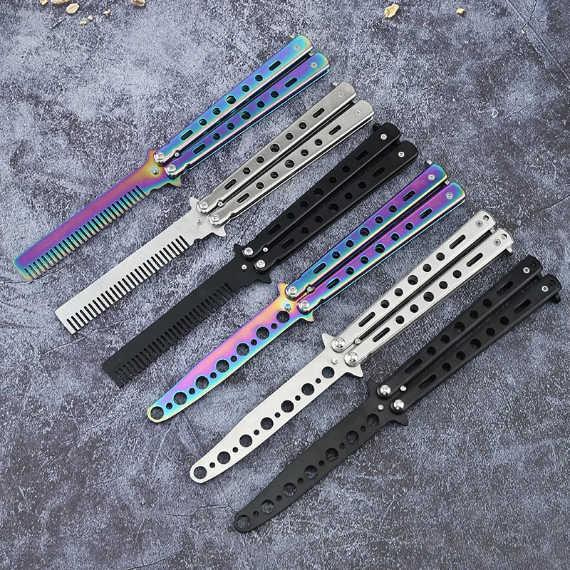 Складная расческа из нержавеющей стали, 1 шт., тренировочный нож-бабочка, расческа для бороды, щетки для усов, инструмент для укладки волос