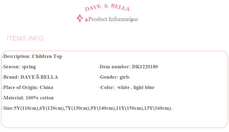 DK1220180 демисезонная детская одежда в стиле Дейва Беллы, детская модная Однотонная рубашка с героями мультфильмов, высококачественные модные футболки для девочек