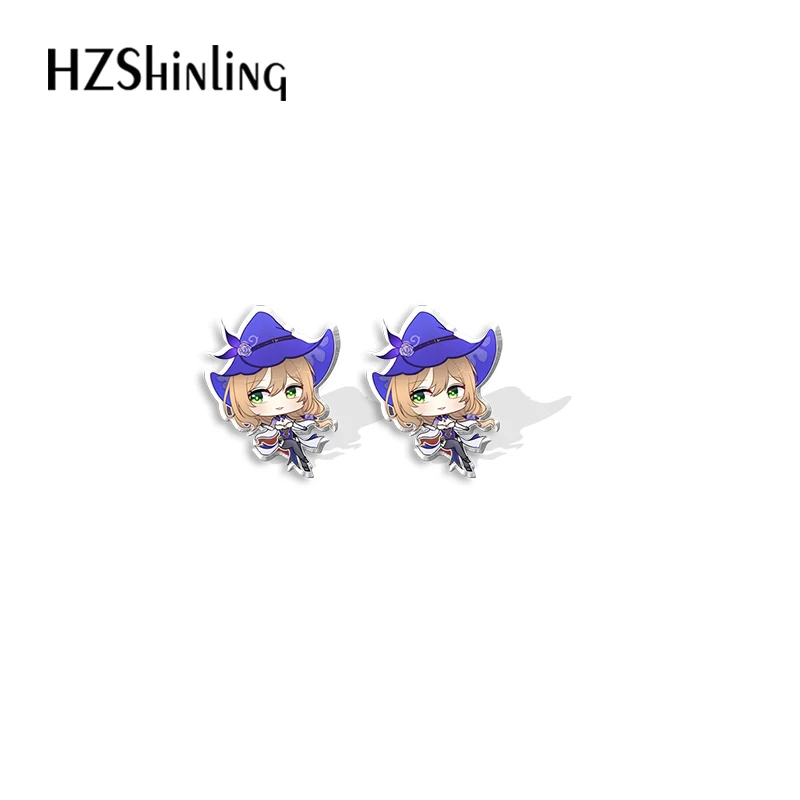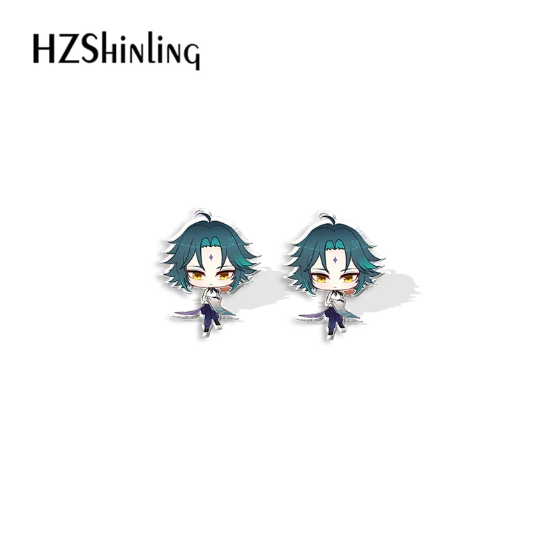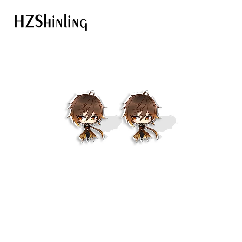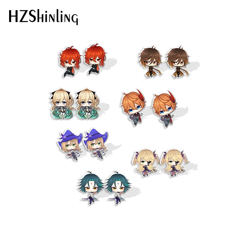 Мультфильм Genshin Impact Xiao Zhongli Lisa мультфильм аниме Узор Акриловые серьги-гвоздики Смола эпоксидные уши ювелирные изделия для девочек