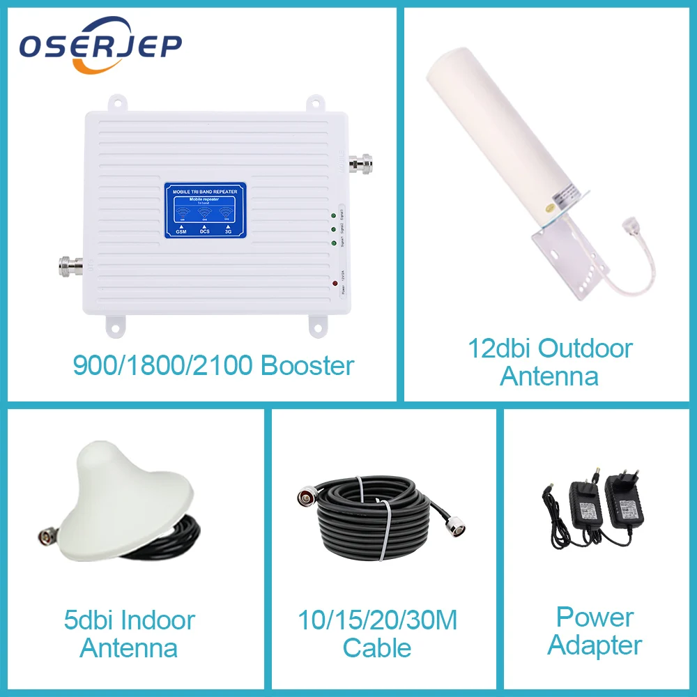 Трехдиапазонный усилитель сотовой связи 900 1800 2100 МГц, усилитель сотовой связи для мобильных телефонов, усилитель 2G 3G 4G, трехдиапазонный ретранслятор + 4G антенна