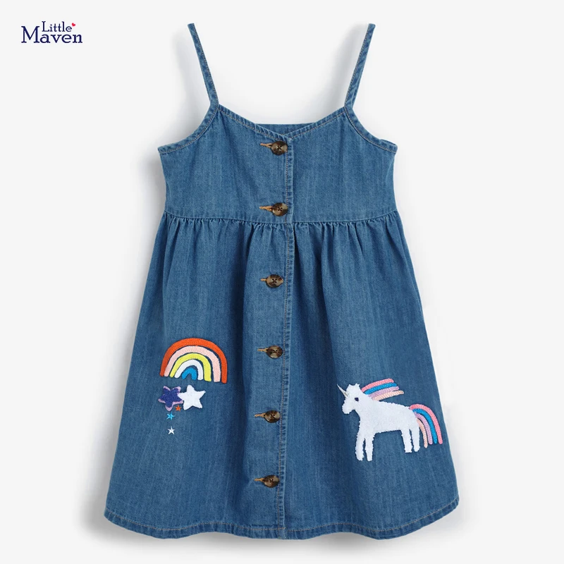 Джинсовое платье для девочек 2-7 лет, с единорогом