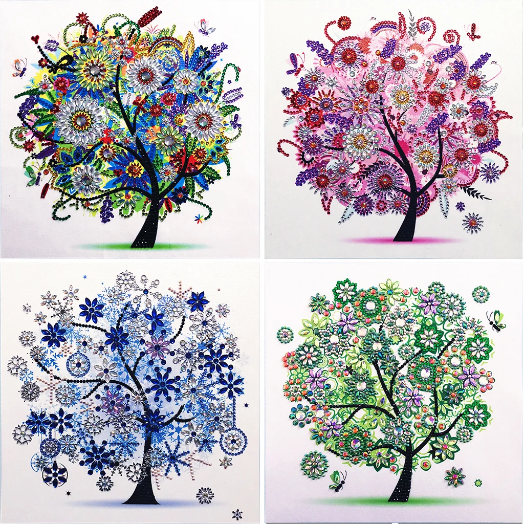 Алмазная 5d-картина сделай сам, мозаика специальной формы с изображением дерева на четыре сезона, украшение для дома