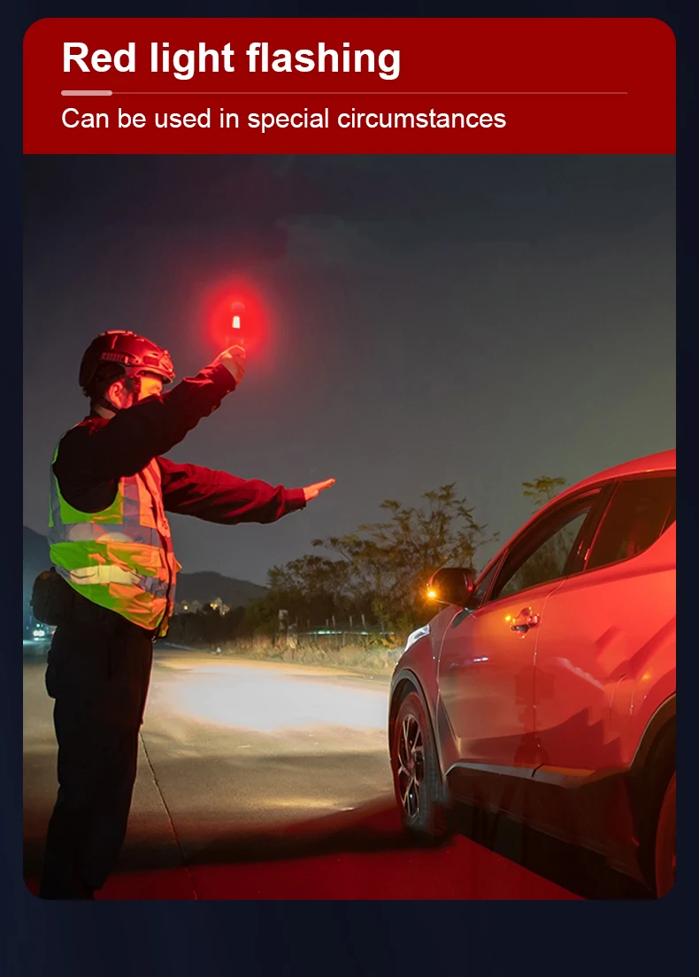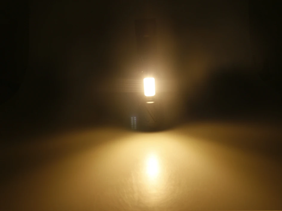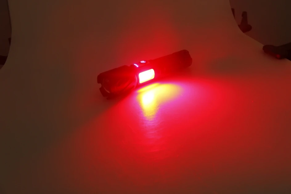 Боковой светильник имеет три светильник источников белый/желтый/красный светильник на обе стороны. Теплый желтый светильник используется для фотосъемки, светильник или настольная лампа, а также для использования в специальных условиях, с более сильной проникающей мощностью и красный светильник для предупреждения. COB лампа может использоваться непрерывно в течение 72 часов, когда фонарик полностью заряжен.