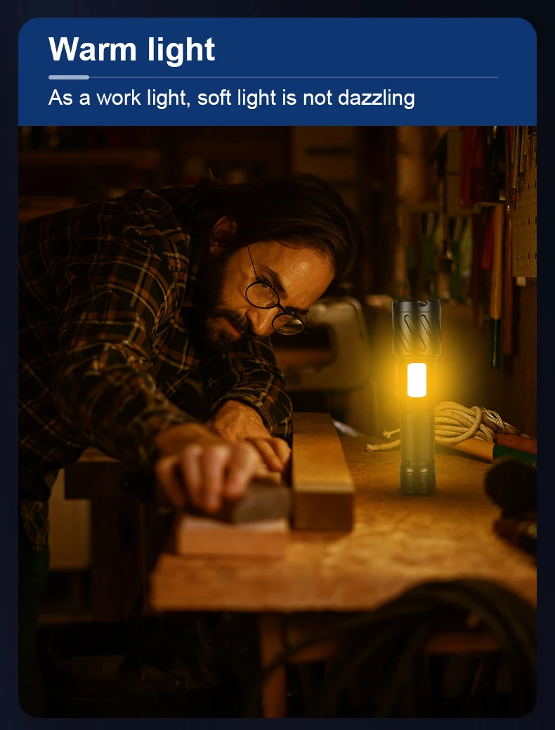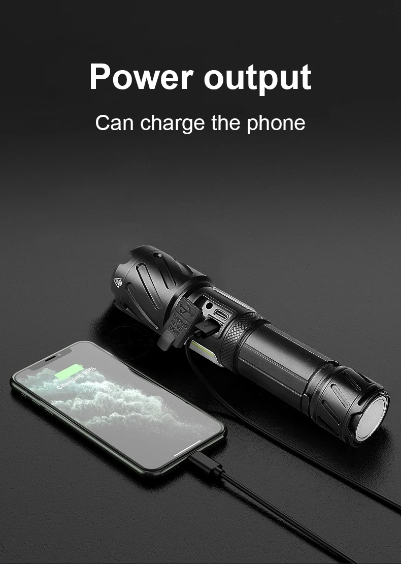 ♦Светодиодный светильник Модель: XHP199 + COB♦Диапазон: 1600 метров♦Режим переключения: 3 режима XHP199 светодиодный (high-low-SOS)♦Светильник режим измерения: светодиодный желтый светильник-белый свет COB светильник COB красный мигающий♦Класс водонепроницаемости: IPX-8♦Метод масштабирования: телескопический зум♦Время освещения: аккумулятор 18650 6-8 часов; Аккумулятор 26650: 8-15 часов♦Размер (см): 17,5*4,3*3,3 см♦Метод зарядки: Type-cUSB зарядка (вход и выход, с функцией мобильного питания, можно заряжать мобильные телефоны)♦Подходит для ночного кемпинга, рыбалки, работы, охоты, треккинга, исследования пещер и т. д.