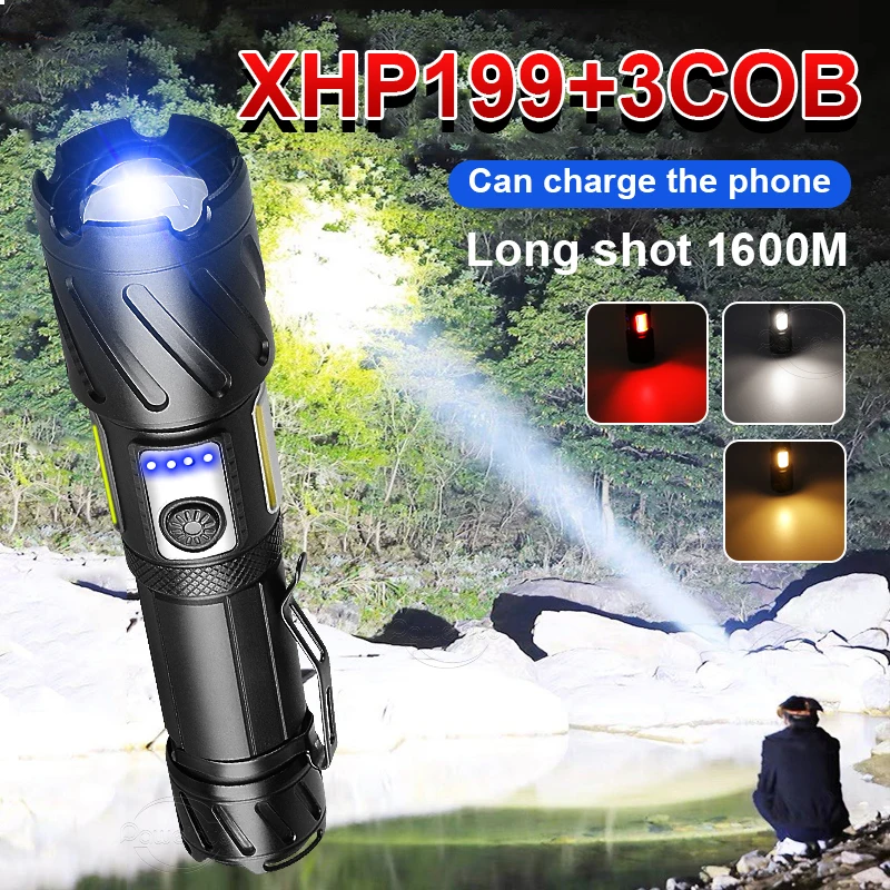 Супер мощная светодиодная вспышка XHP199 3COB, мощная яркая тактическая вспысветильник hp160 XHP90, перезаряжаемый от USB фонарь 26650, лампа для кемпинга