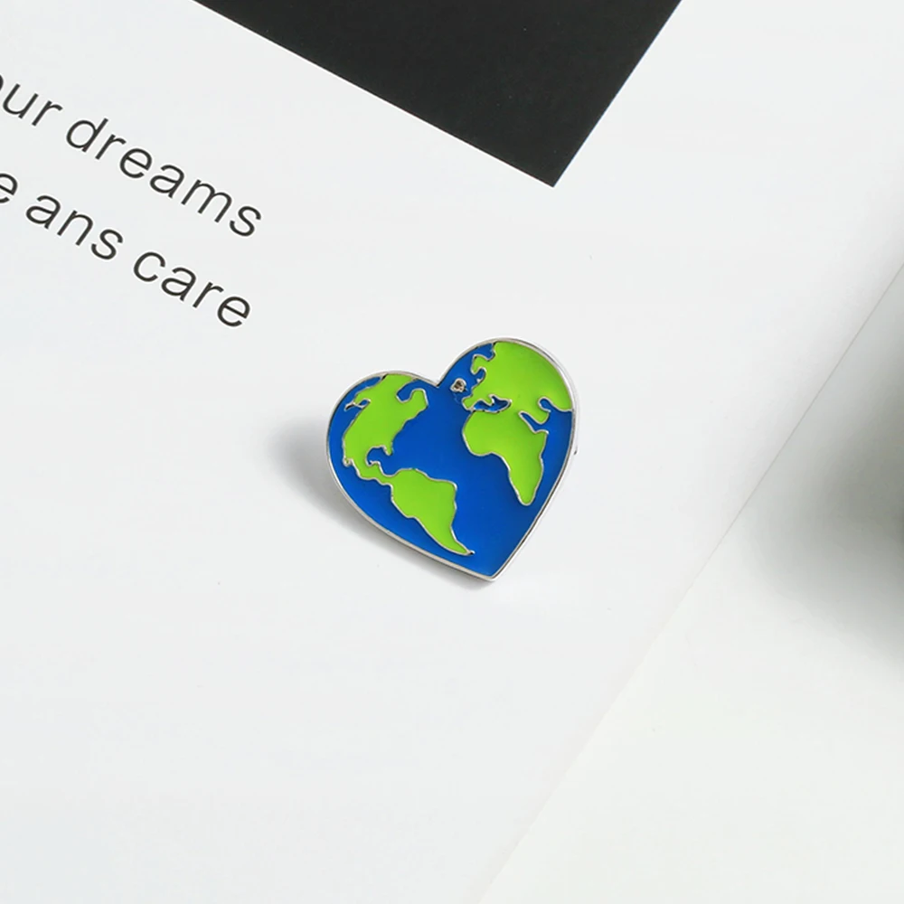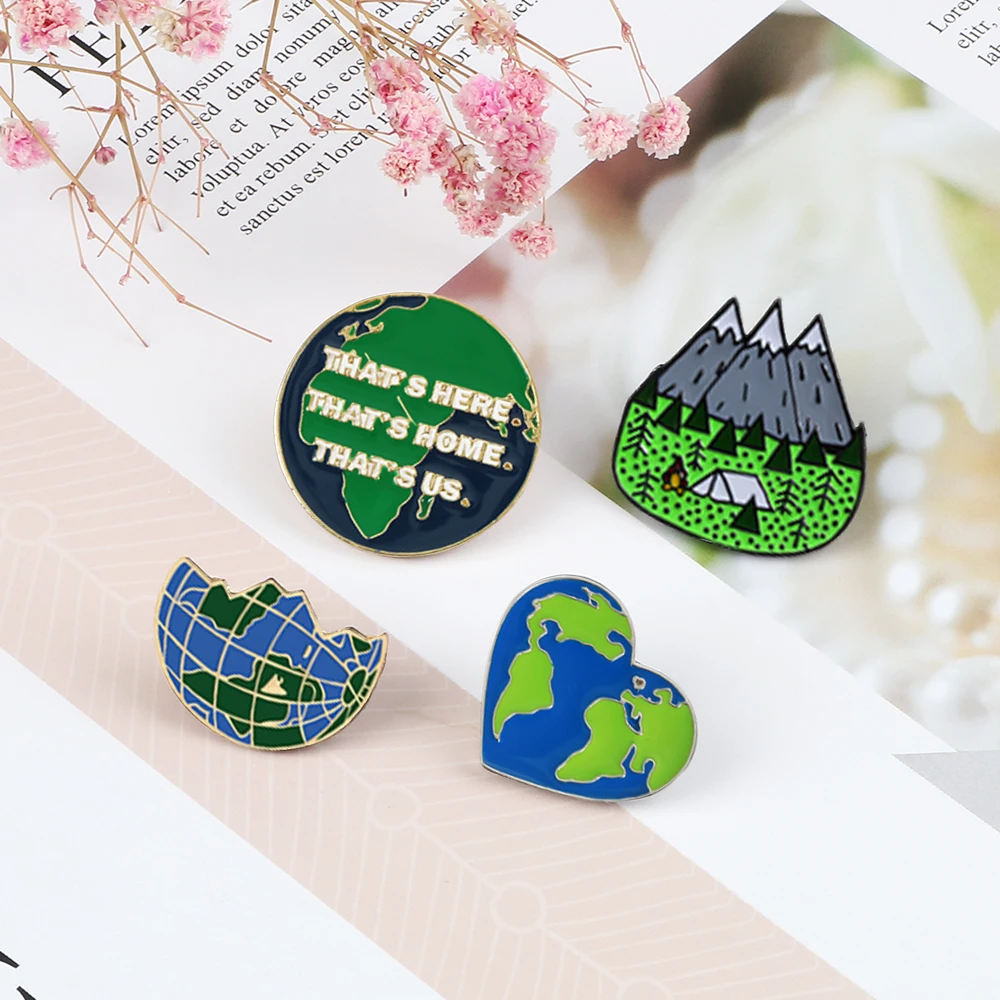 Зеленая Земля сердце карта мира эмаль булавки экологический лес мультфильм экологическая брошь машина путешествия памятные значки ювелирные изделия