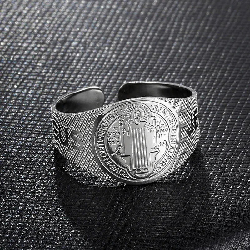 Модный тренд Золотой орден Святого Бенедикта Иисуса Мужчины Женщины кольца из нержавеющей стали регулируемое открытие католицизма Религиозные ювелирные изделия
