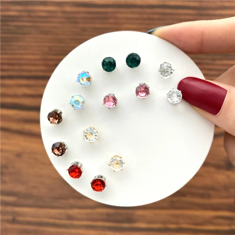17KM модные геометрические серьги-гвоздики звезды сердце стразы для девочек женские Модные Серьги серебряного цвета с кристаллами набор ювелирных изделий подарок