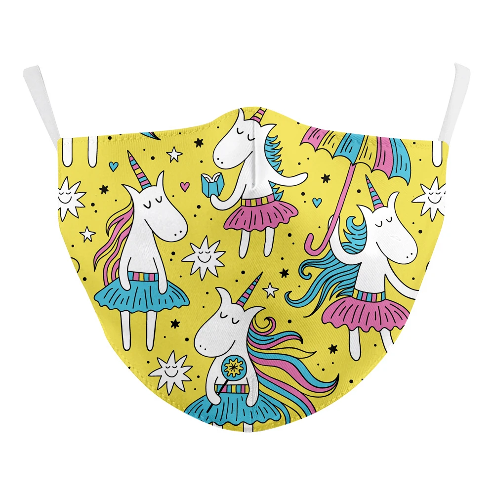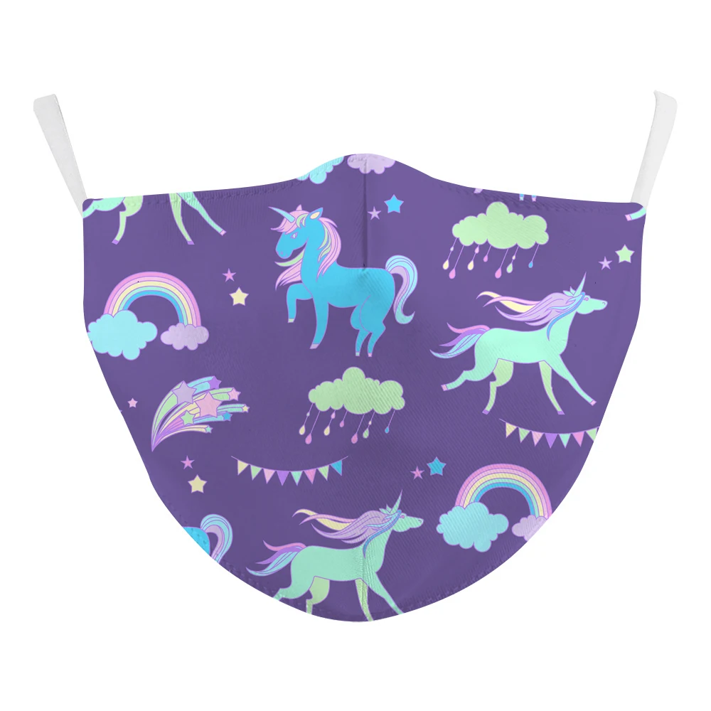 Детская маска с милым принтом пони, маска с единорогом, защитная маска для рта с фильтром PM2.5, многоразовые моющиеся маски для лица из хлопчатобумажной ткани, чехол