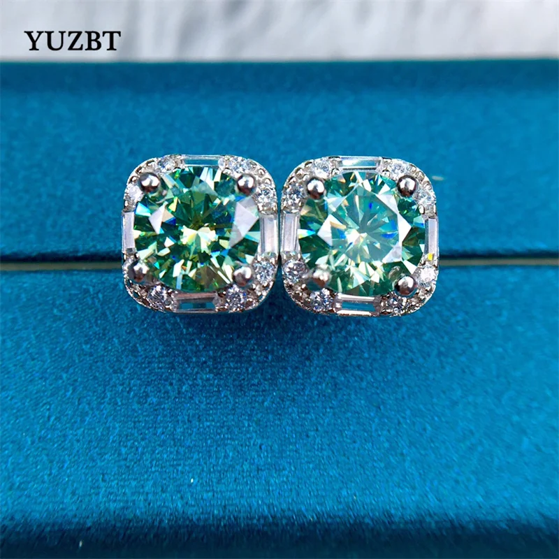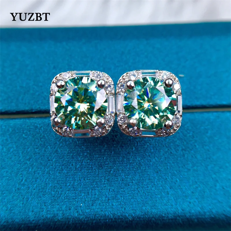 YUZBT 18K белое золото с покрытием всего 2 карата бриллиантовая огранка Синий и Зеленый квадратный драгоценный камень бриллиант тест-наклейки серьги в подарок