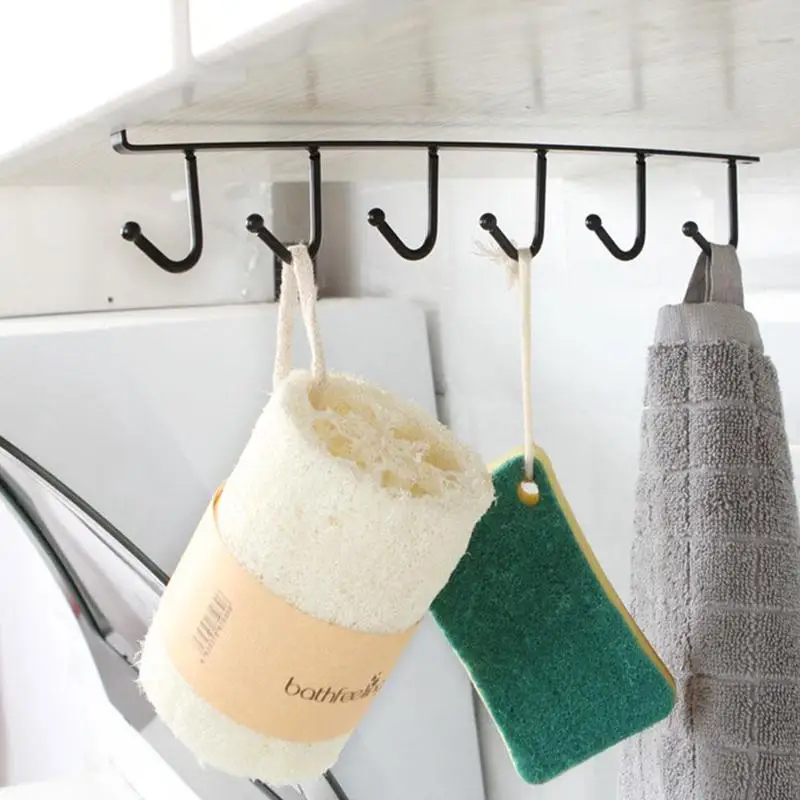 6 железных крючков, крючки для хранения, полка, шкаф, металлический подвесной шкаф под чашки, вешалка для кружек, крючки, полки для кухни, ванной комнаты G5B7