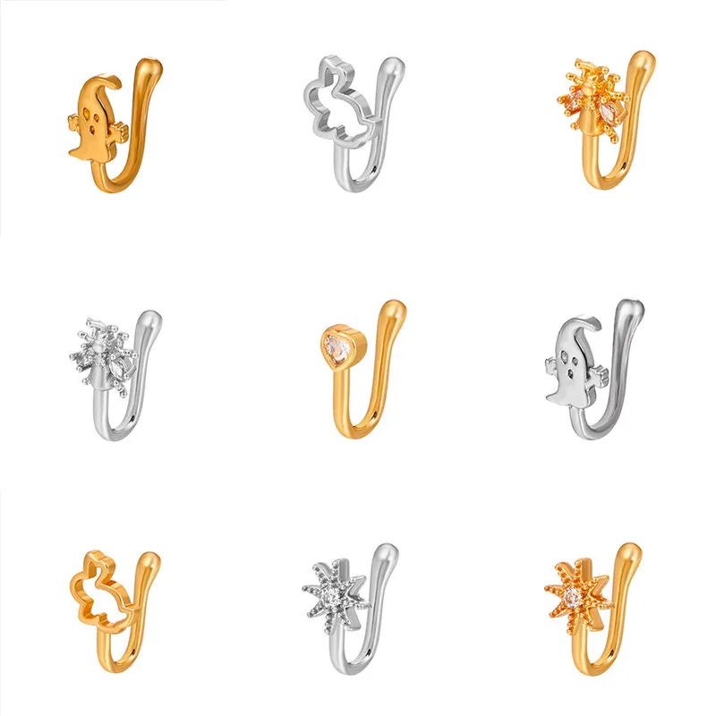 Поддельные Пирсинг нос кольцо Сердце Звезда Корона Лягушка Кролик Т...