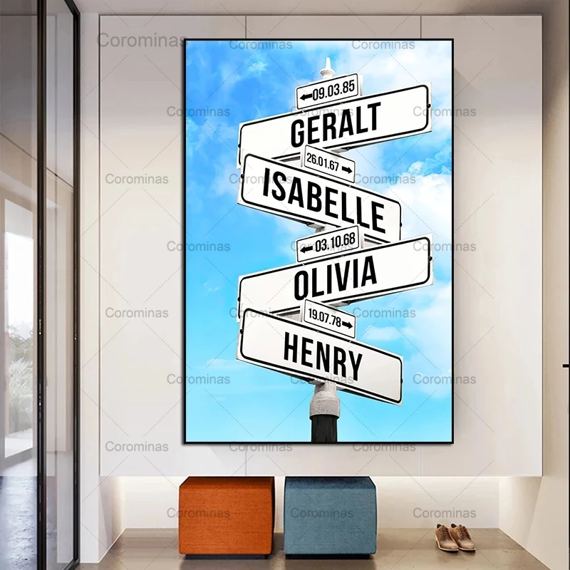 Персонализированные пересечение уличных знаков именадаты Картина на холсте настенное искусство специальный подарок для семьи уличный знак домашний декор