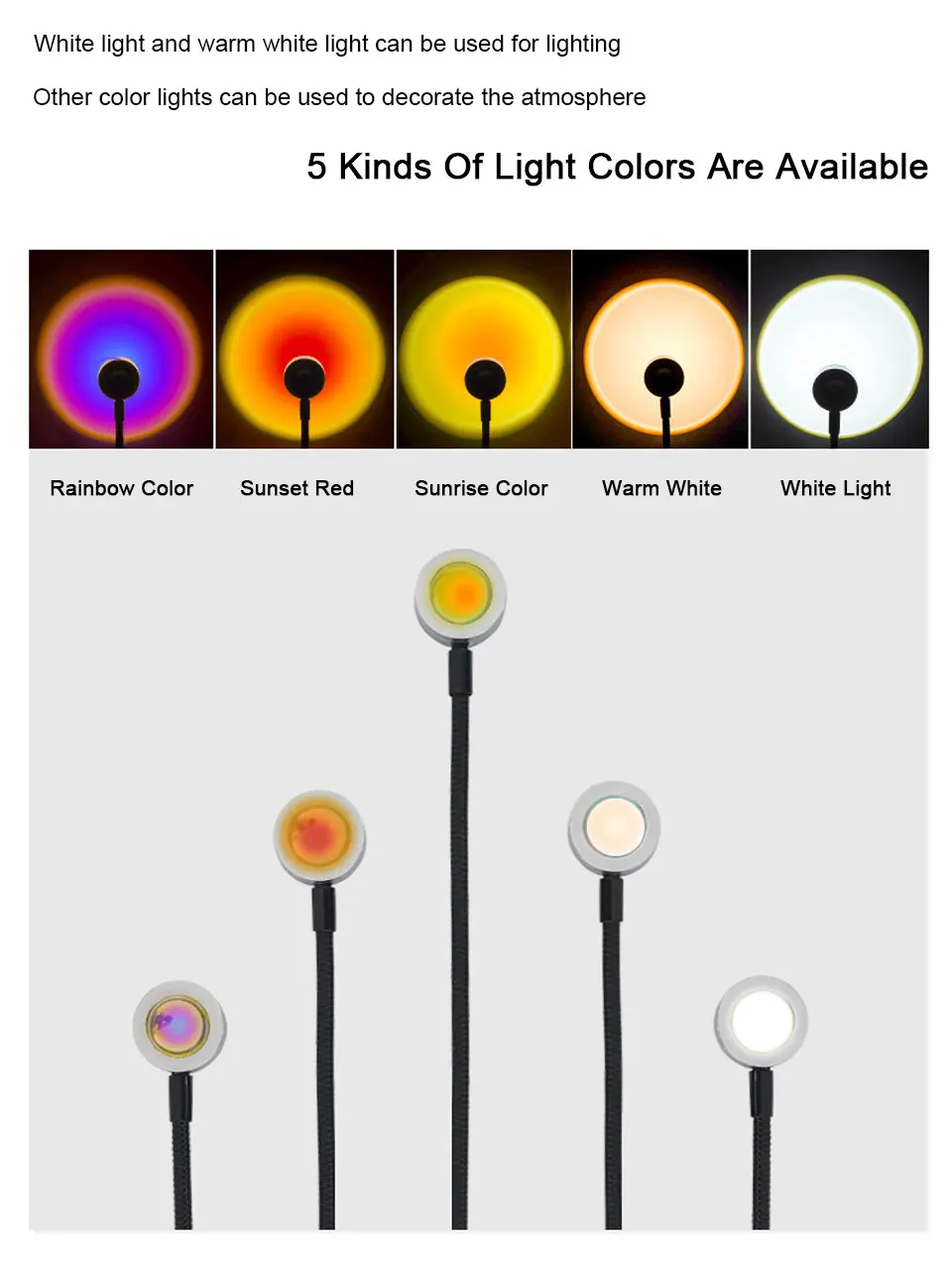 Цвет: белый светильник/теплый белый/радужный/красный закат/цвет восхода солнца