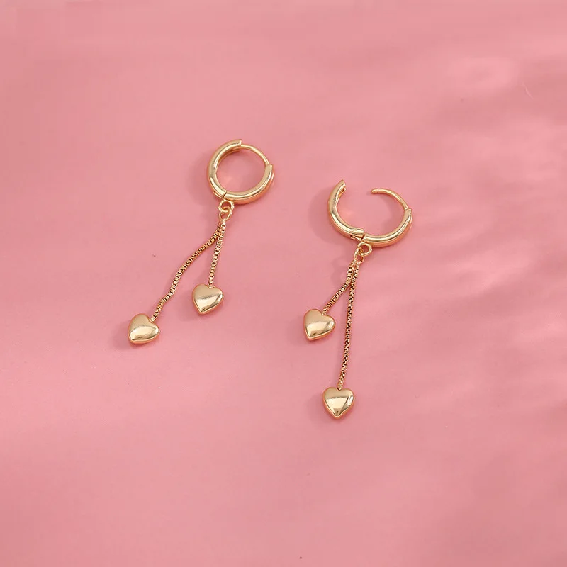Серьги-подвески серебряного цвета с двойной кисточкой в форме сердца для женщин