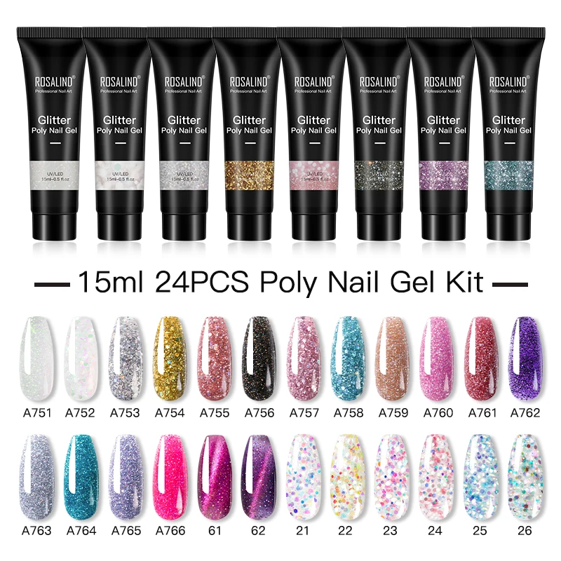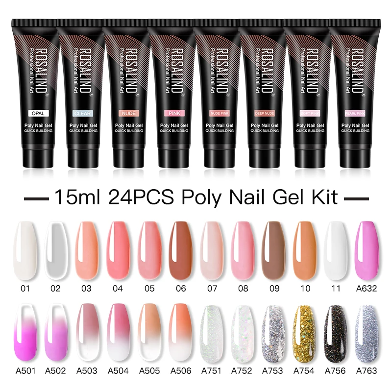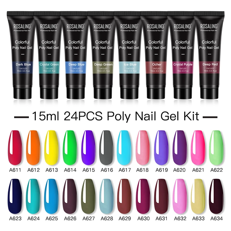 ROSALIND 24 шт./лот набор гелевых ногтей поли гель для наращивания пальцев DIY Гель-лак для ногтей Полупостоянный Гибридный лак