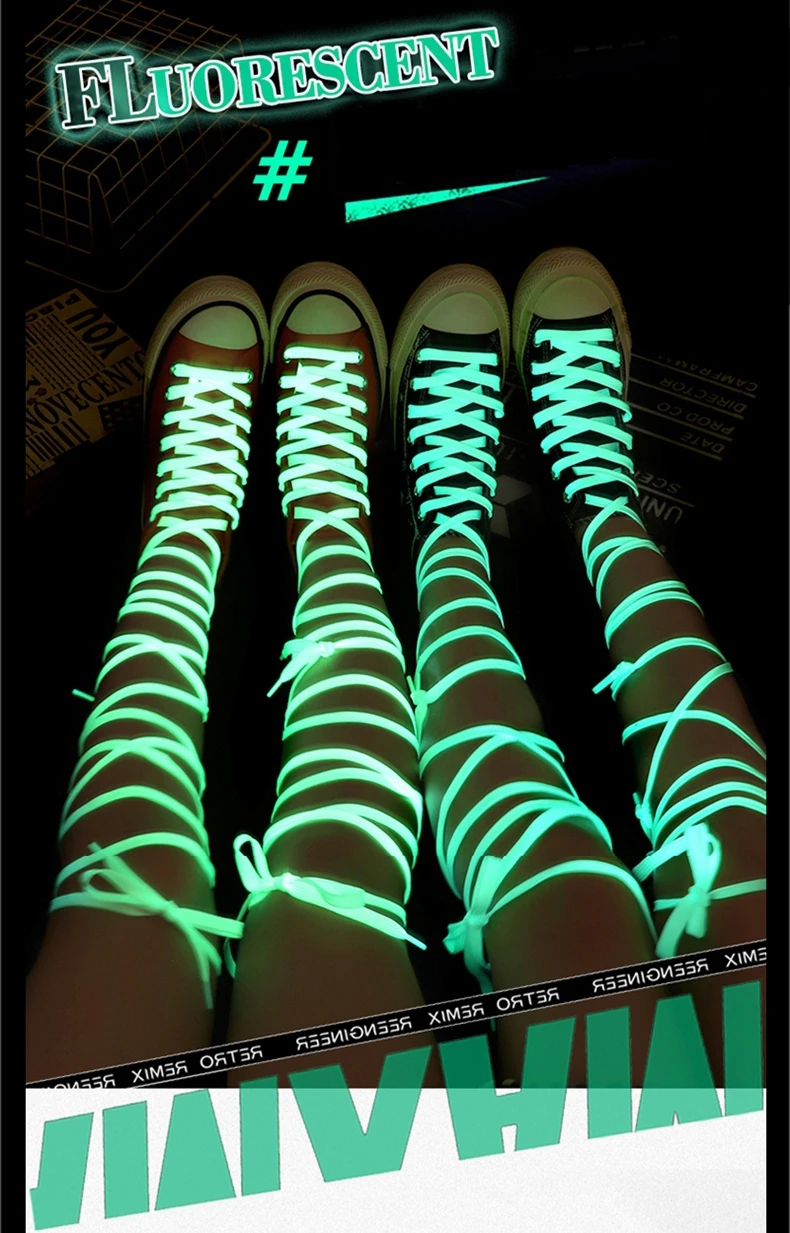 Светящиеся шнурки для вечеринки в ночное время, крутые флуоресцентные круглые шнурки, подходят для всех обуви, женские и мужские шнурки для прогулок