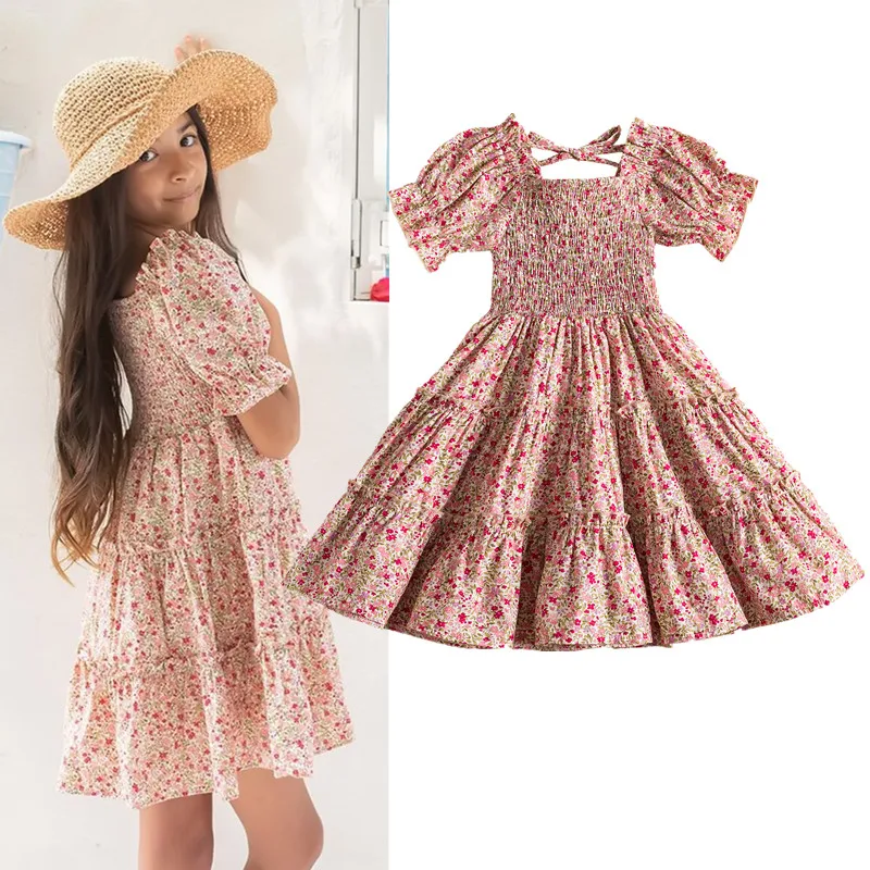 Платье принцессы для девочек, детская летняя одежда с оборками и коротким рукавом, детское праздничное платье с цветочным принтом на день рождения, новинка 2022, модное платье для девочек
