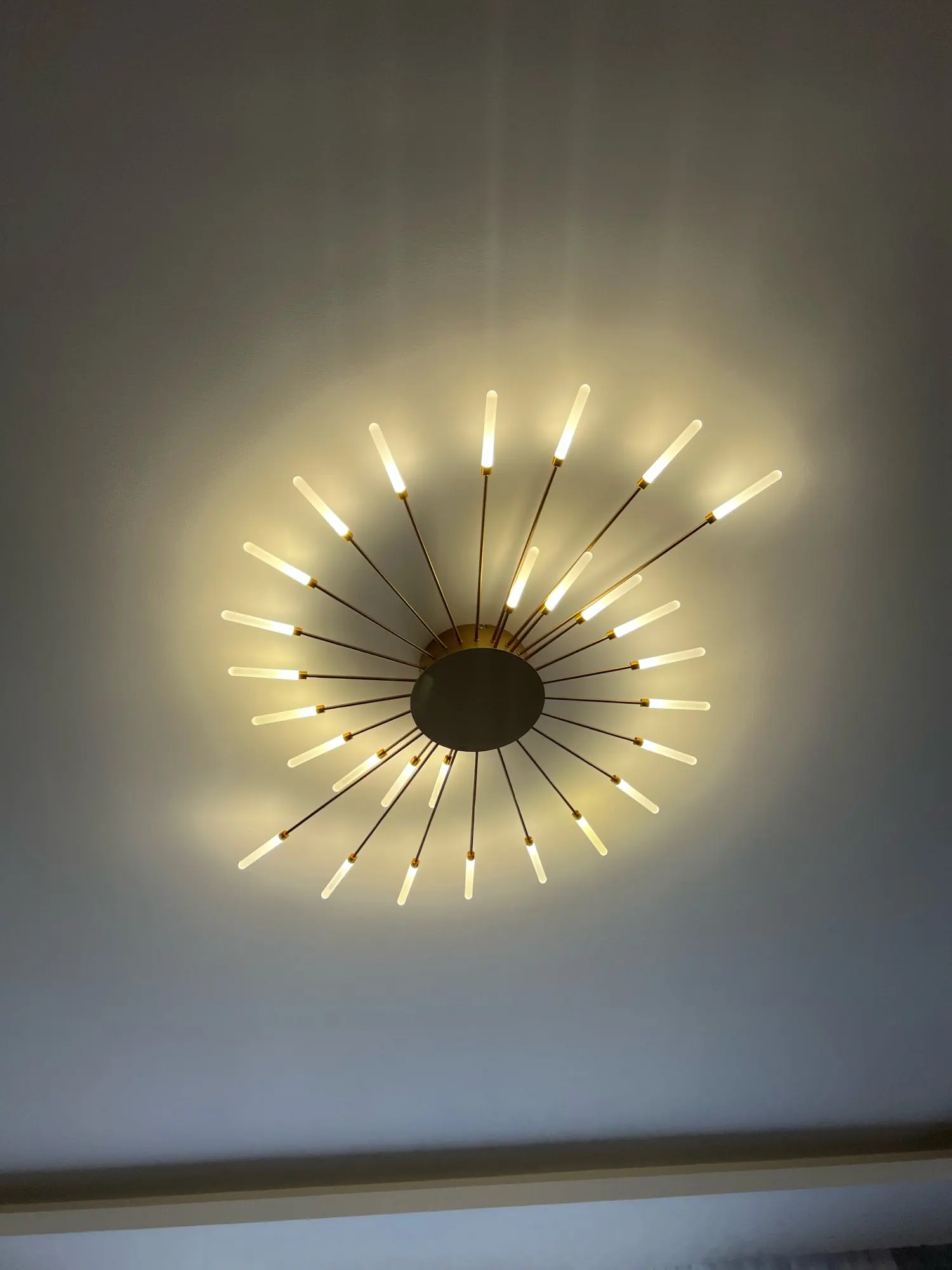 Золотая Потолочная люстра в виде фейерверка, люстра в спальню, люстра, освещение для гостиной, современные люстры, светодиодные светильники, блеск