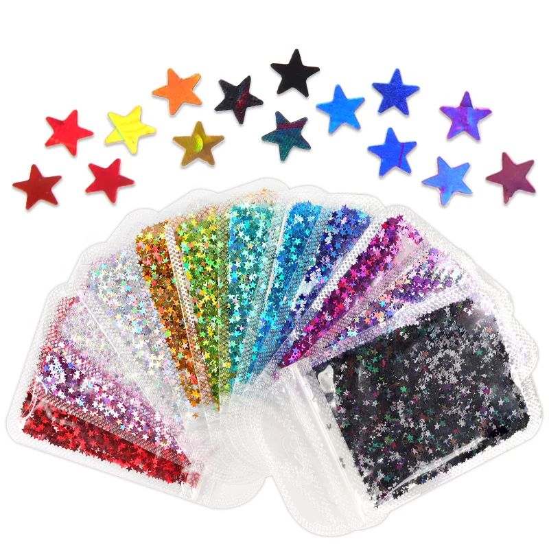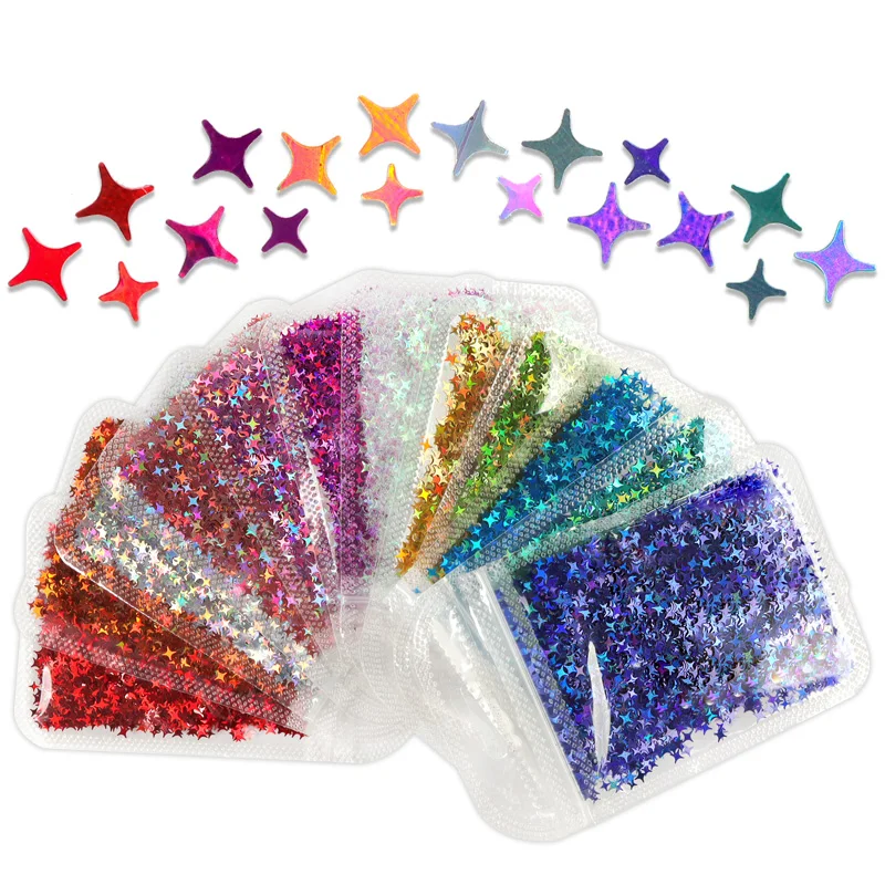 Набор из 12 пакетов, Лазерная Звезда, блестки, снежинки, наполнитель для эпоксидной смолы, форма для самостоятельного изготовления, Материалы для творчества, наборы для декорирования
