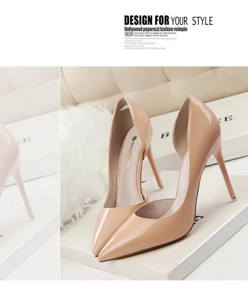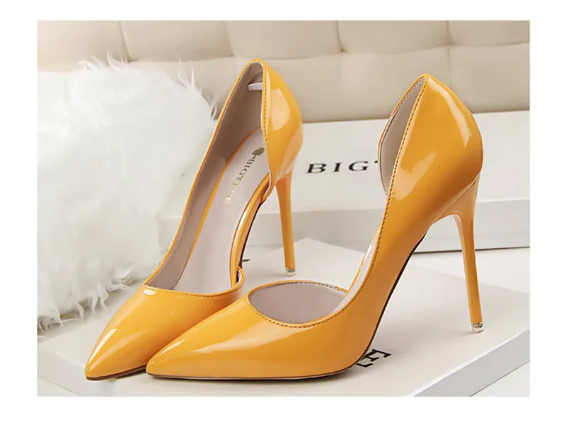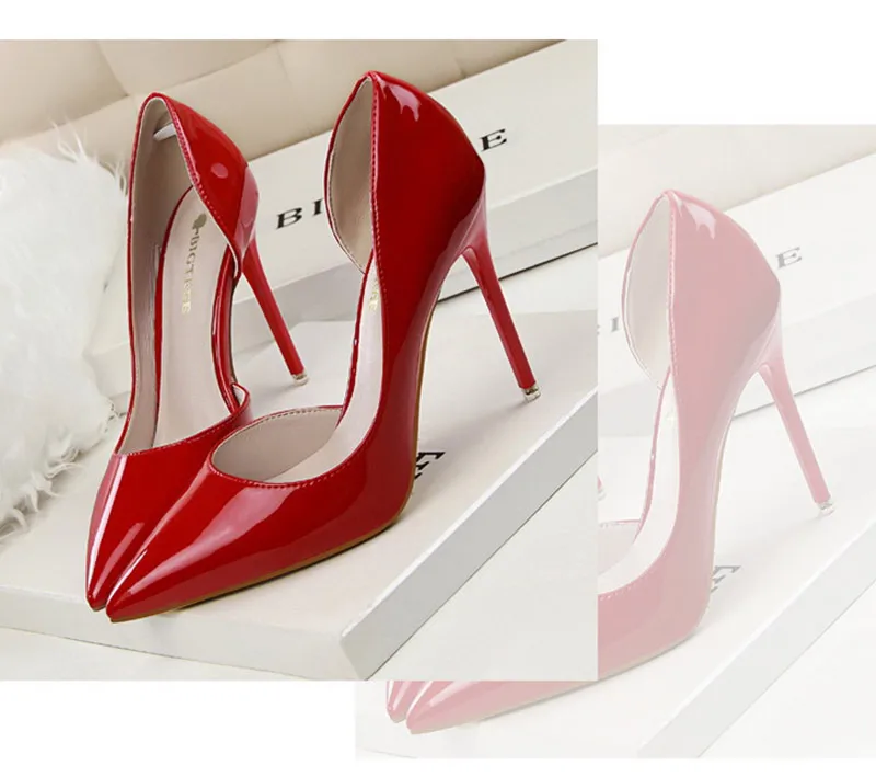 BIGTREE женская обувь женские туфли-лодочки; Пикантные туфли на высоком тонком каблуке; 10,5 см; Туфли с острым носком; Тонкий каблук Женская обувь вечерние Лакированная кожа; Женская обувь на каблуках на каблуке-шпильке