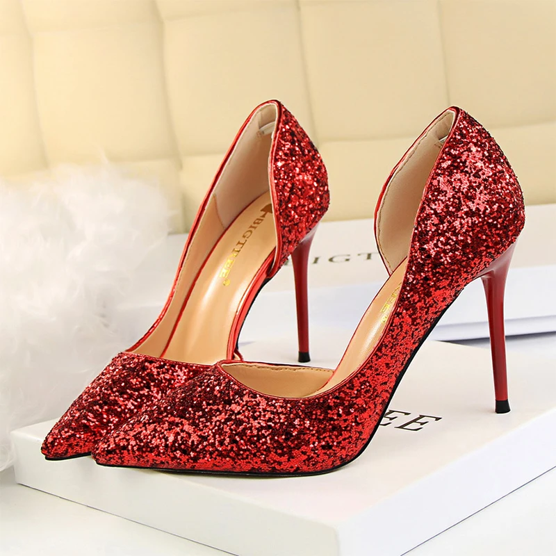 Для женщин женские туфли-лодочки 2022 Новый Женская обувь с острым носком на тонких каблуках на каблуке 9,5 см блестками...