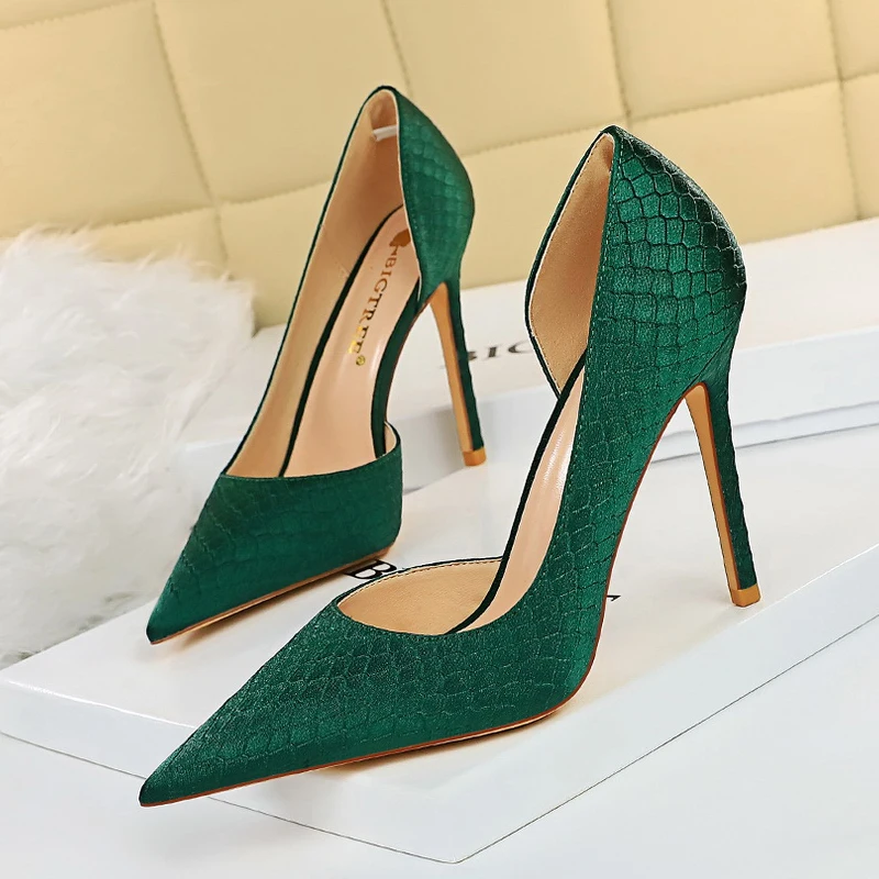 Для женщин женские туфли-лодочки из шелка змея масштаба, женская обувь на каблуке 10,5 см острый носок Для женщин высокое...