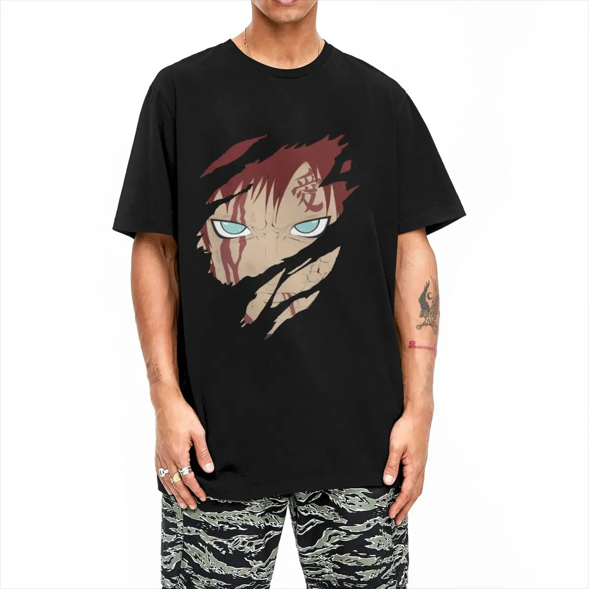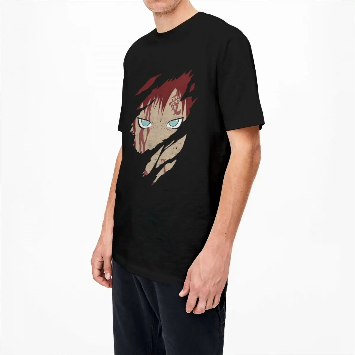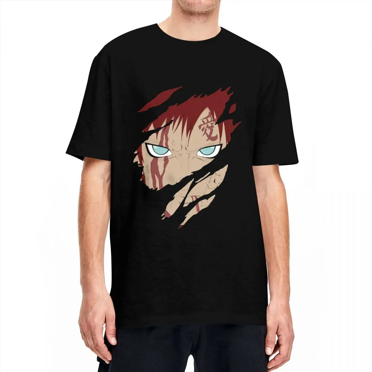 Футболка мужская с круглым вырезом, забавная тенниска из 100% хлопка с принтом Наруто Гаара, майка с короткими рукавами в стиле аниме, уникальная одежда