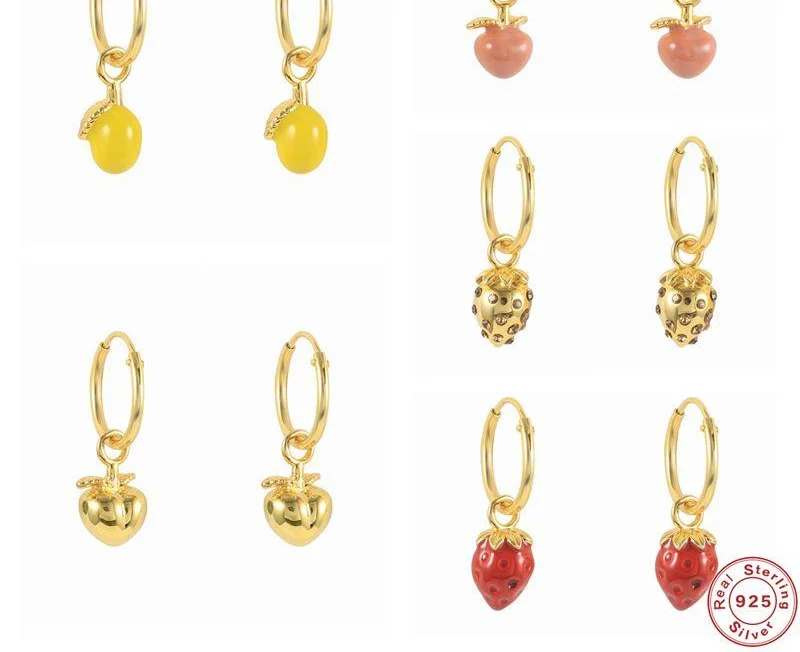 Женские серьги-подвески из серебра 2021 пробы, с яблоком, лимоном, авокадо
