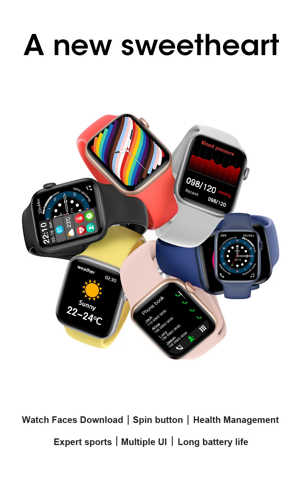 Загрузка Watchface, Разделенный экран, блокировка доступа, Bluetooth Вызов, частота сердечных сокращений, BP, ECG, Женская запись периода.