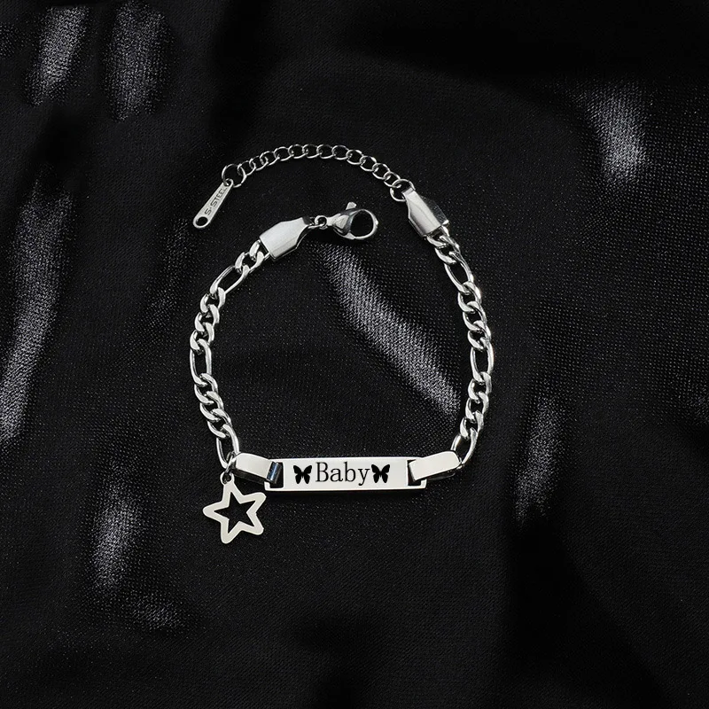 Персонализированные имя ребенка браслет из нержавеющей стали звено цепи гладкий браслет на заказ ребенка ID день рождения Дата детей браслет ювелирные изделия