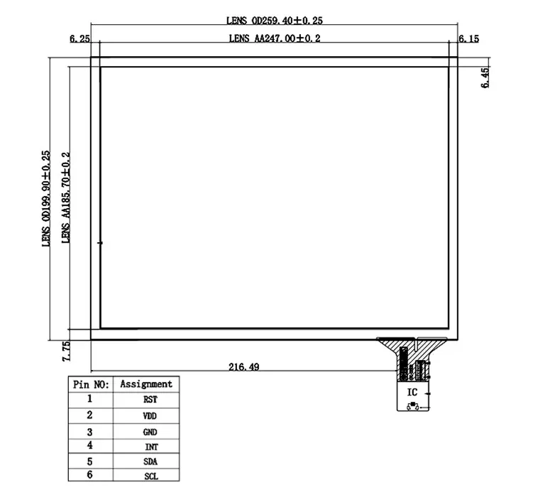 10,1-дюймовый 12,1 мм * 260 мм для женской емкостной сенсорной панели с цифровым преобразователем, стеклянная USB-плата драйвера