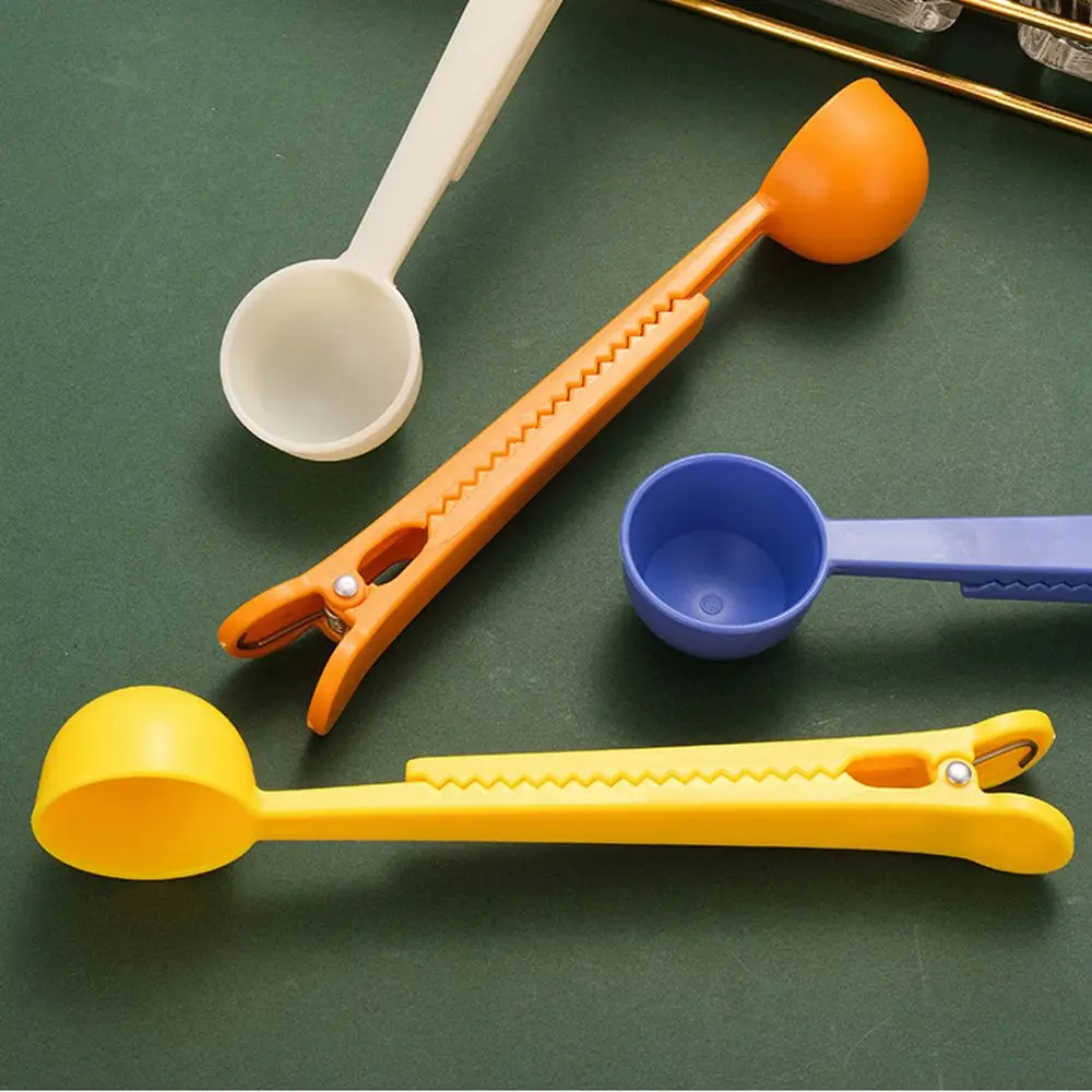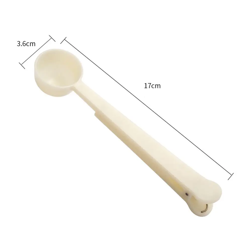 2,2 В 1 зажим для кофейного совка: совки двойные как уплотнительный зажим, который сделан из прочного пружинного и пищевого пластика, чтобы держать кофейные мешки плотно закрытыми и свежими. Двойная функциональная ложка обеспечивает равное измерение кофе каждый раз.