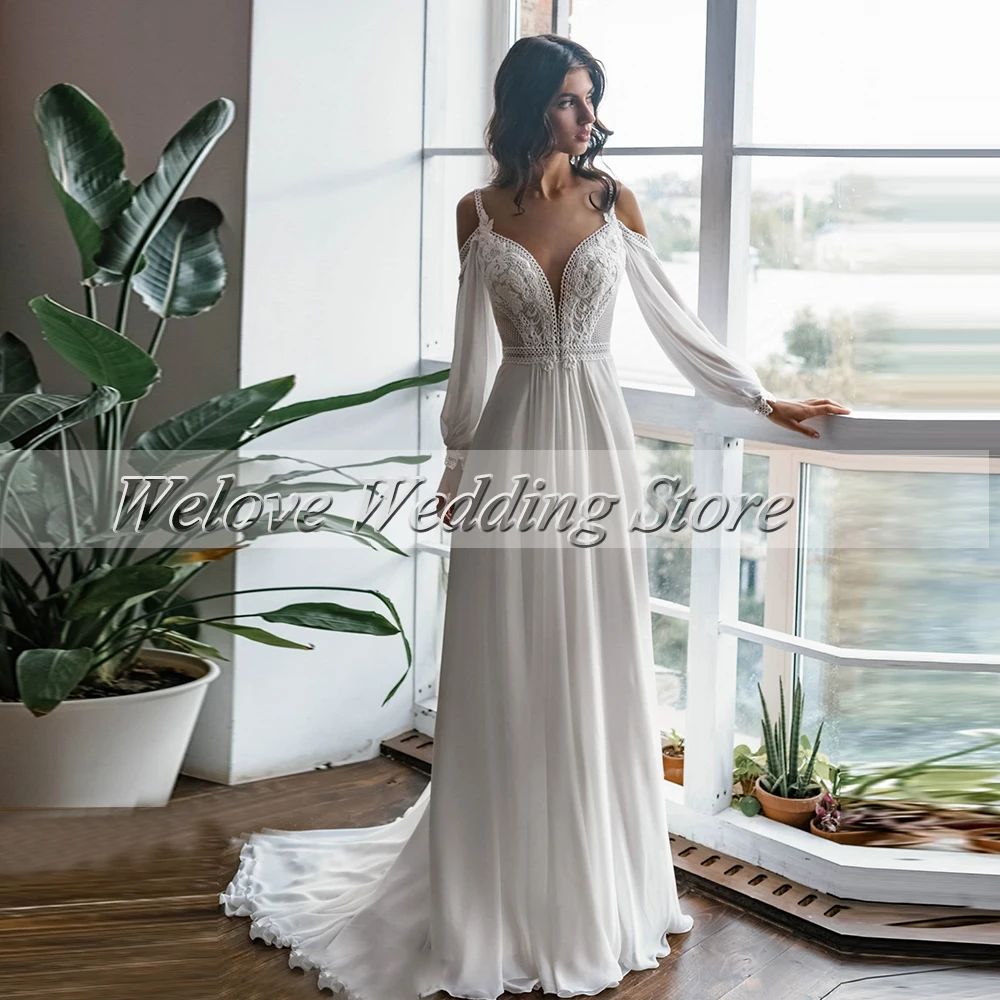 Элегантное белое свадебное платье для невесты 2022 платье с рукавам...