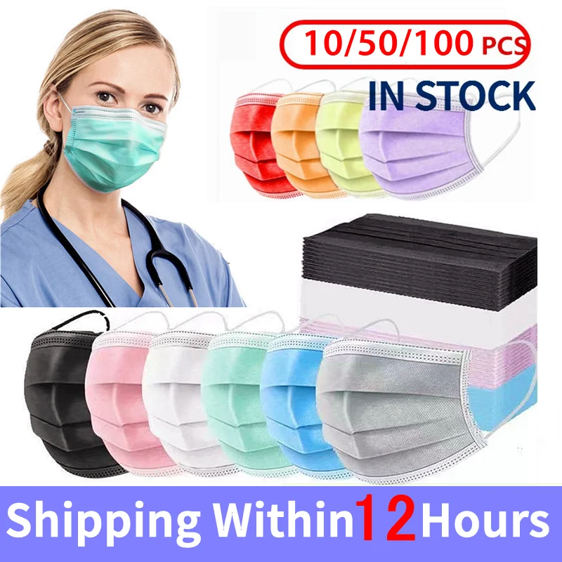 Маска для лица одноразовая 3-слойная с фильтром, сертифицированная цветная дышащая, Нетканая, одноразовая, для взрослых