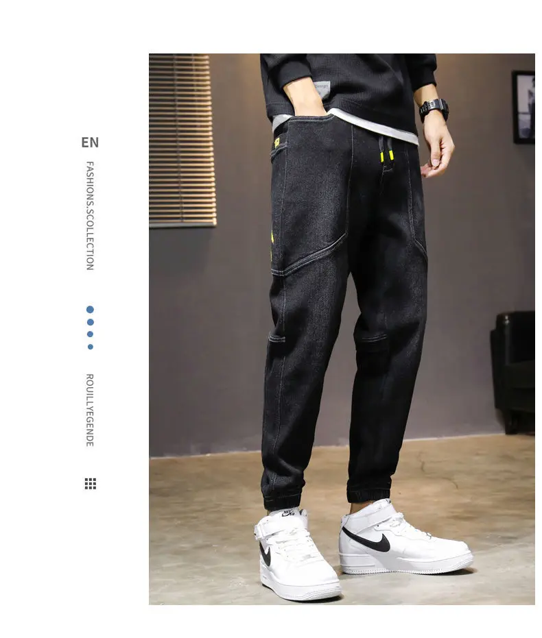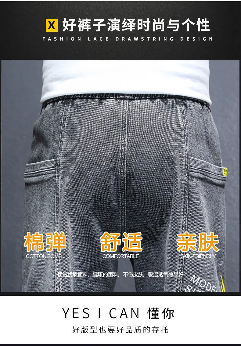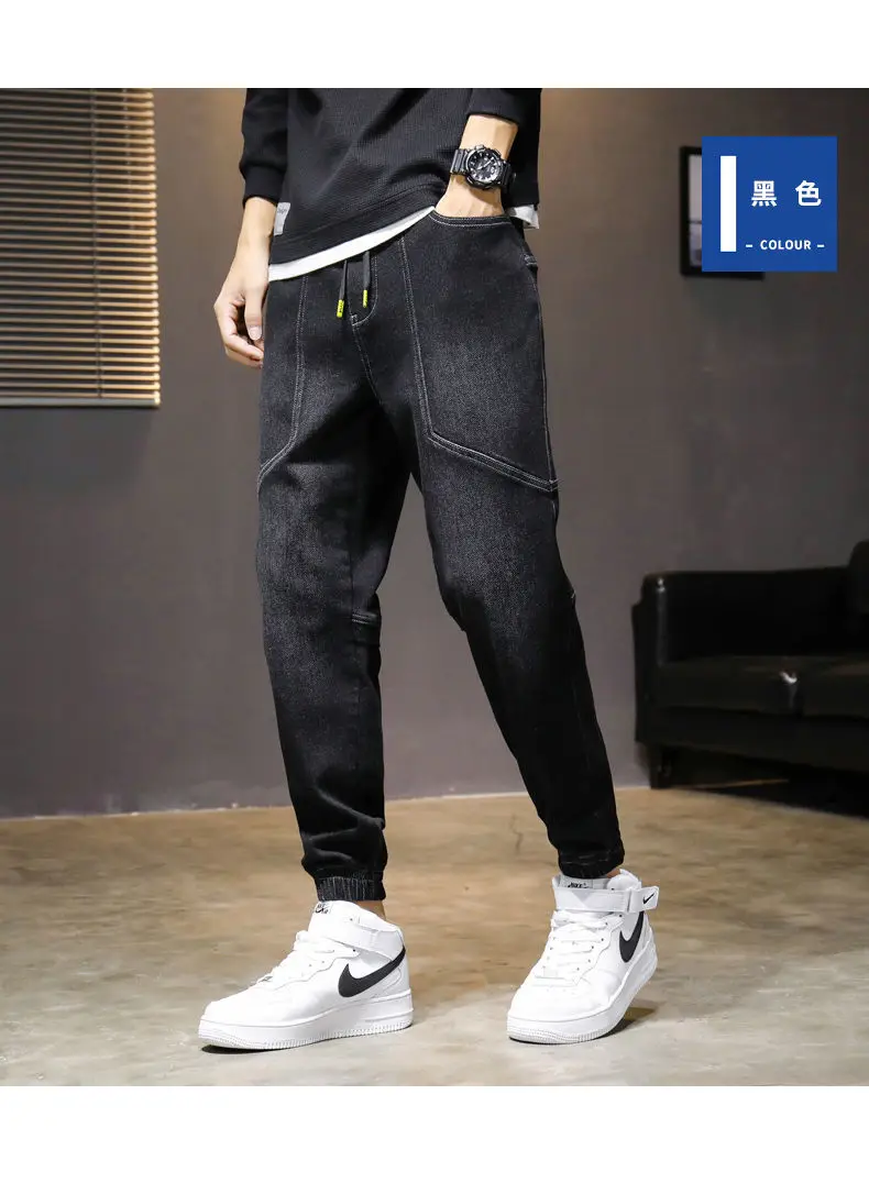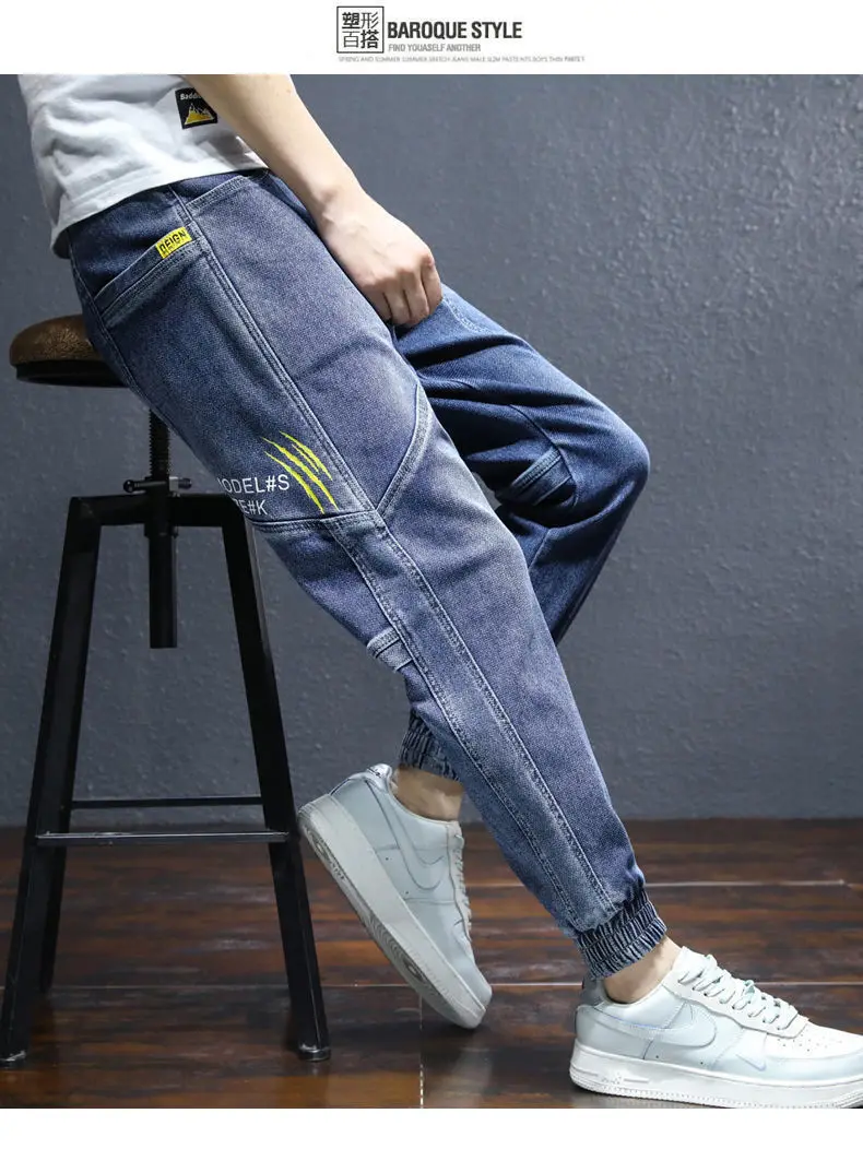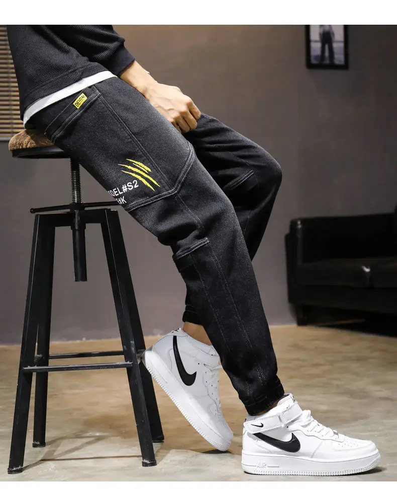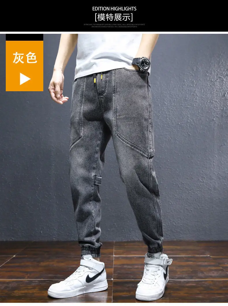Джинсы-карго мужские свободного покроя, модные брендовые брюки-султанки с эластичным поясом, повседневные штаны, зимние