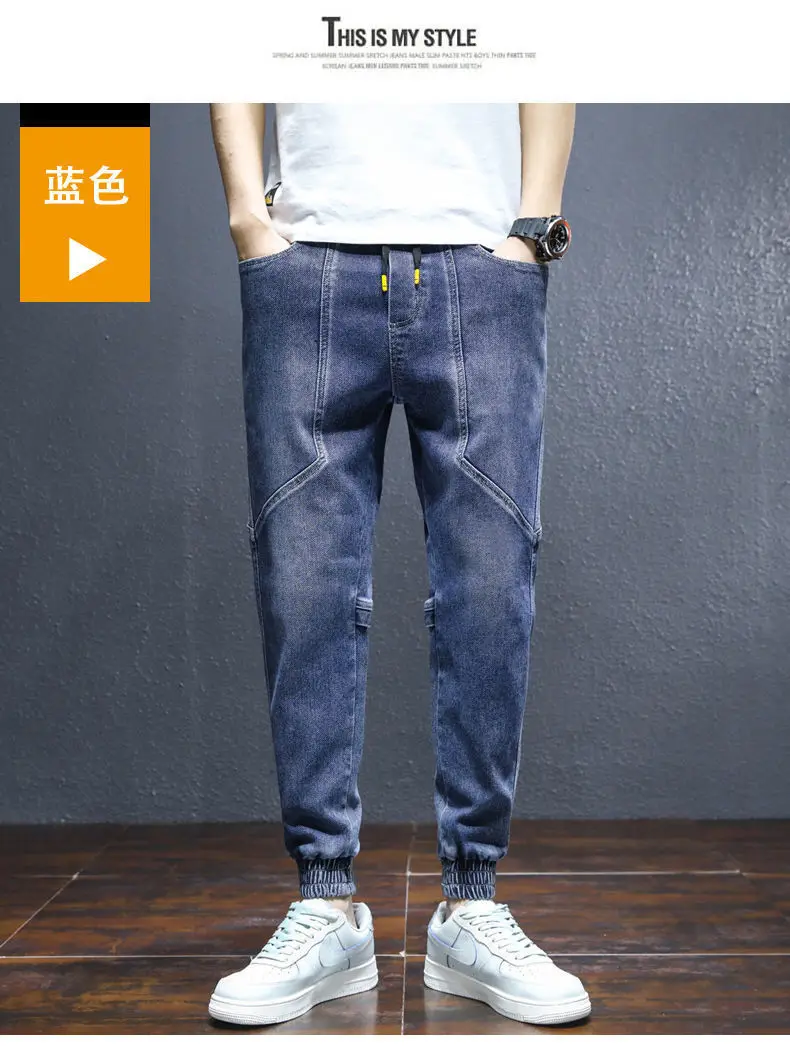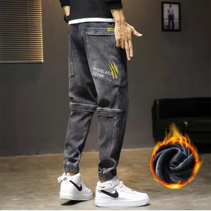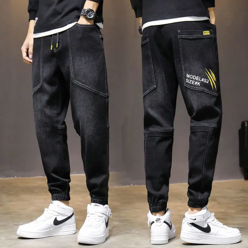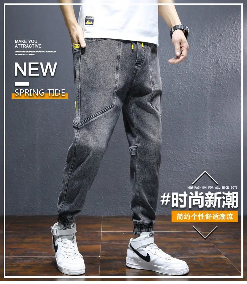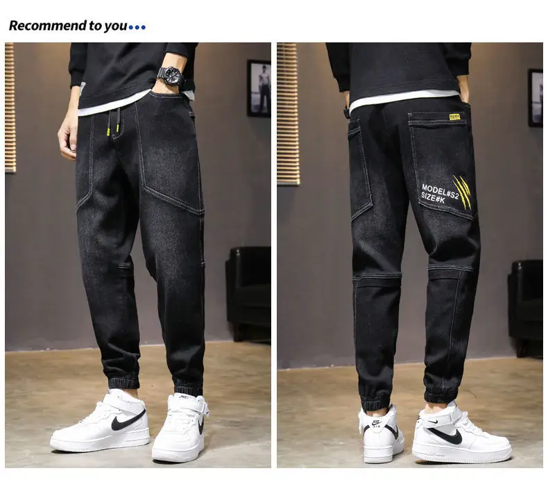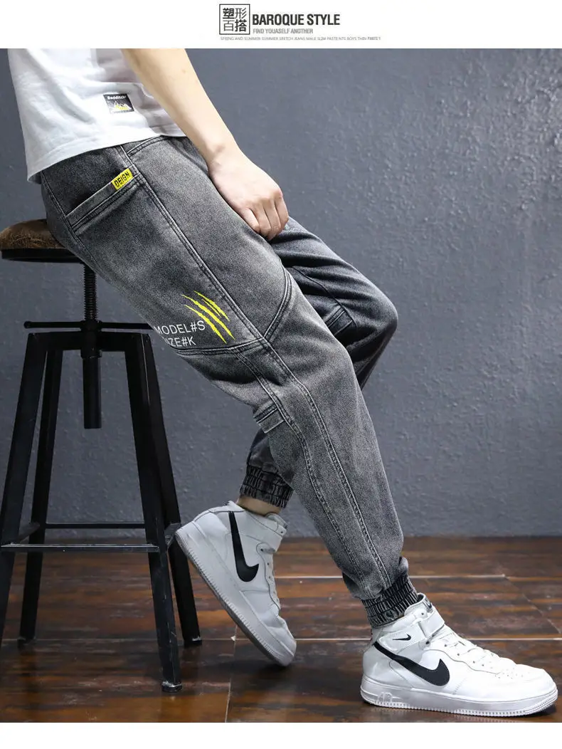 Джинсы-карго мужские свободного покроя, модные брендовые брюки-султанки с эластичным поясом, повседневные штаны, зимние