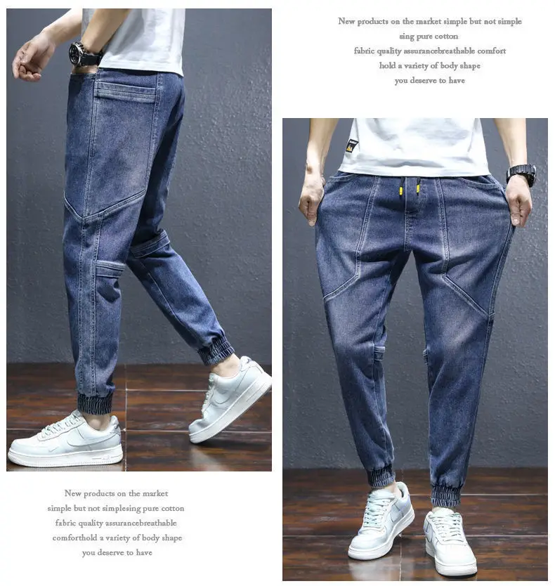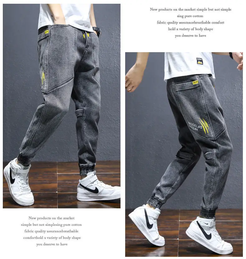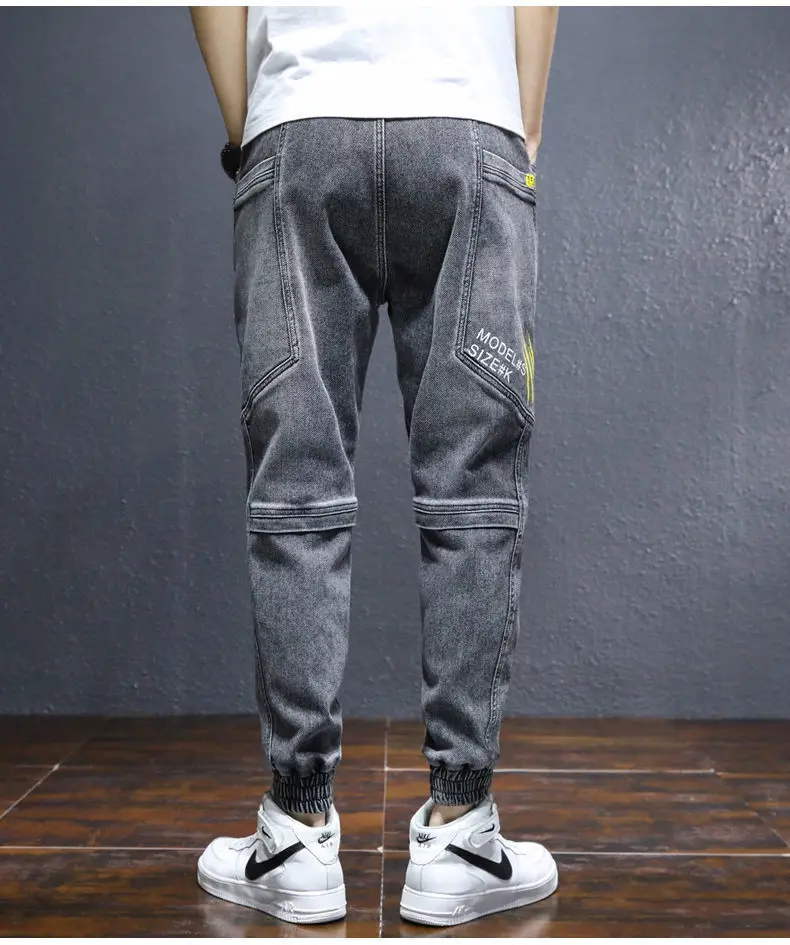 Мужские джинсовые брюки-карго, Свободные повседневные брюки из дени...